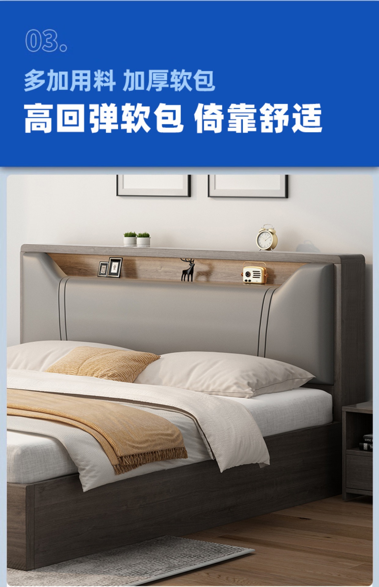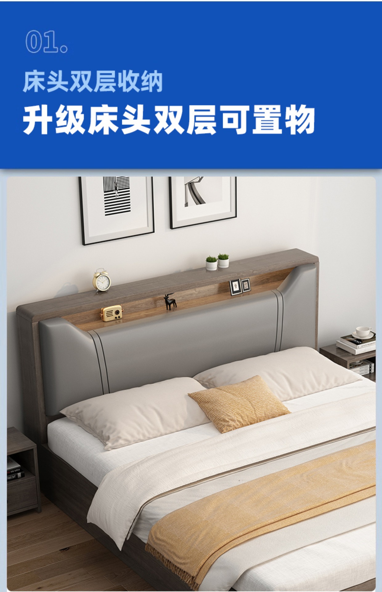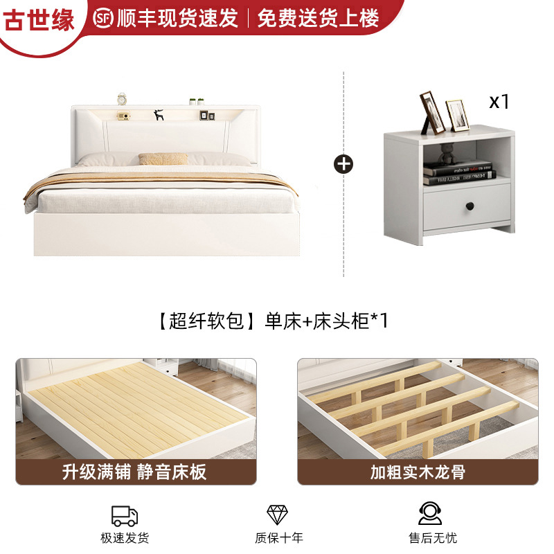 • [색상 비고] 대형 소프트 패키지 그레이 싱글 침대 + 침대 옆 탁자*1 [위층 설치 패키지]