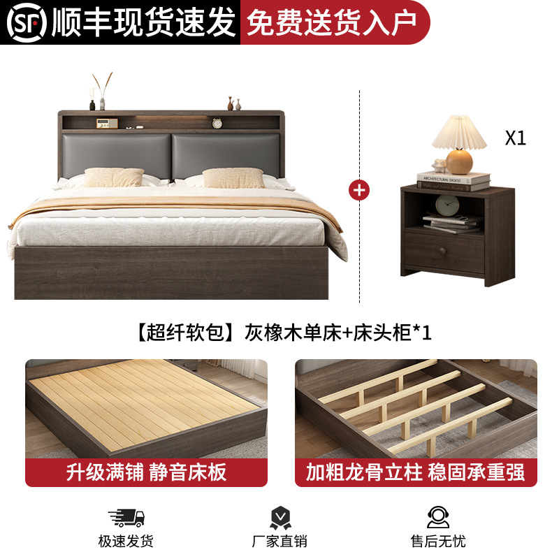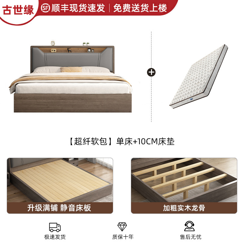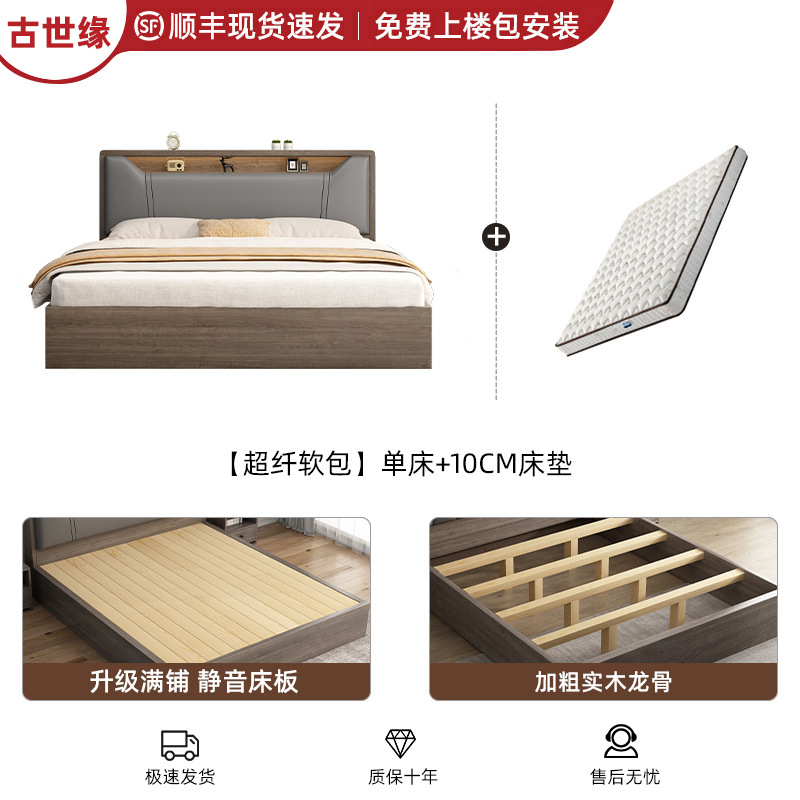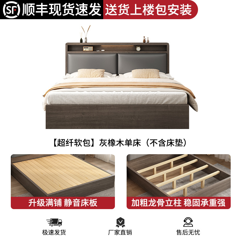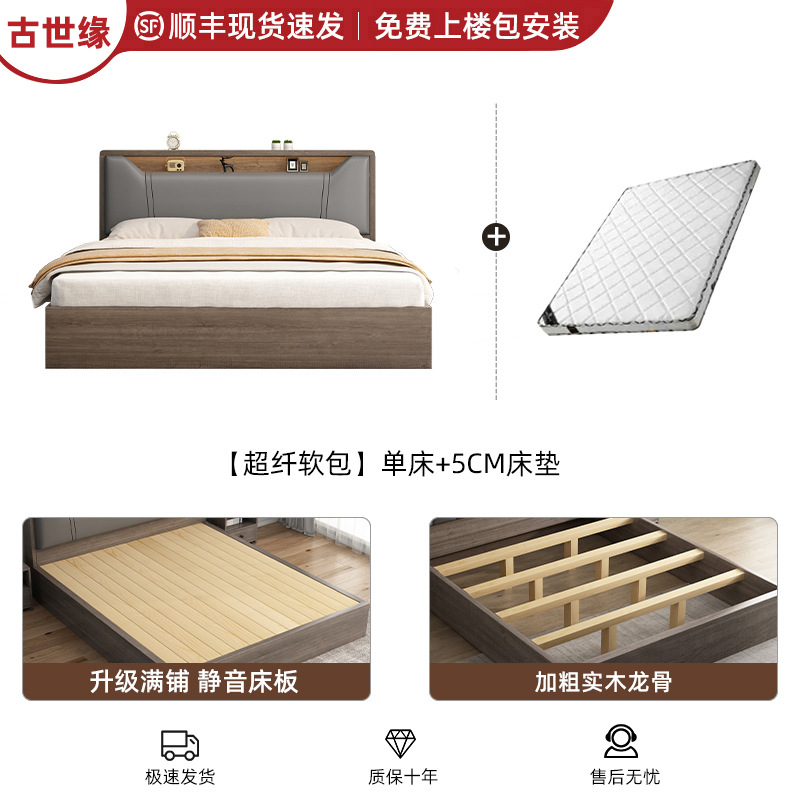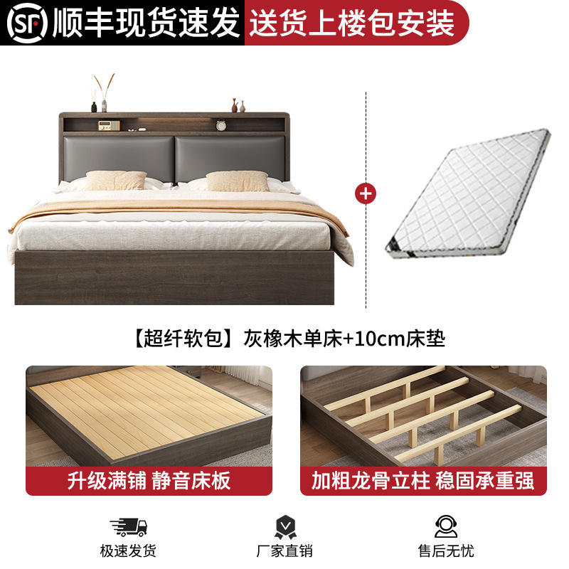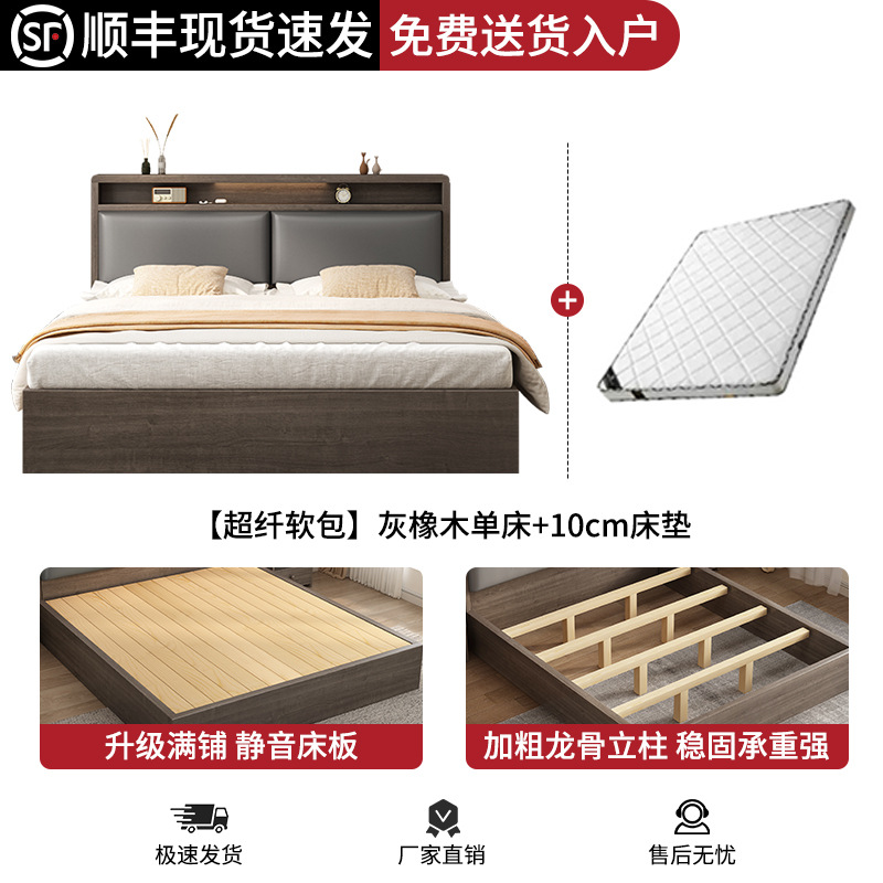 침대 단단한 나무 침대 1.8 m 더블 침대 침실 임대 작은 아파트 유연한 침대 1.2 저장 침대 싱글 침대 프레임스토어 가기