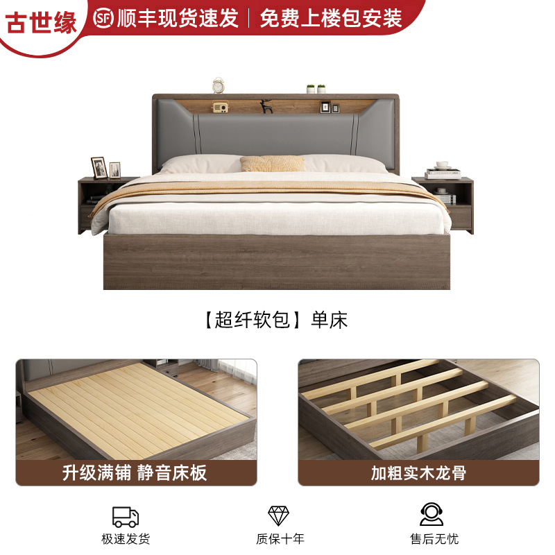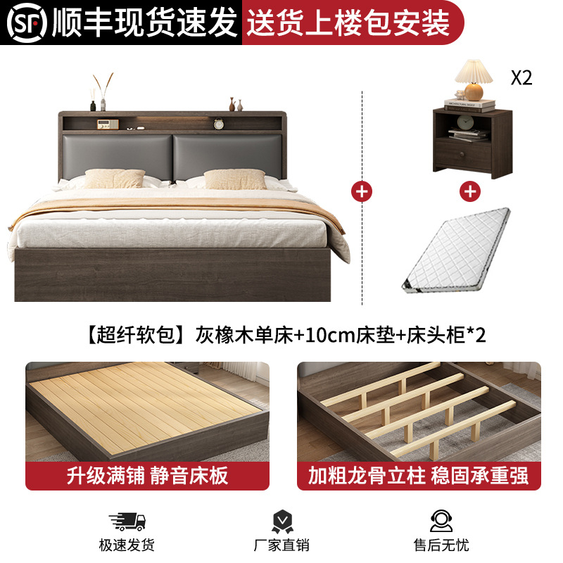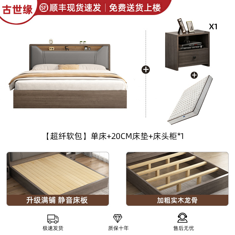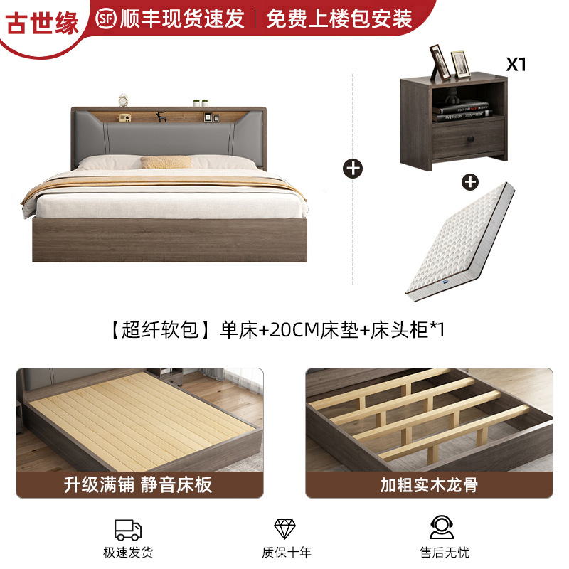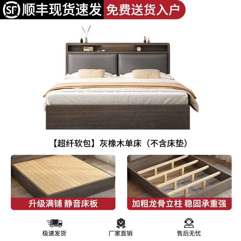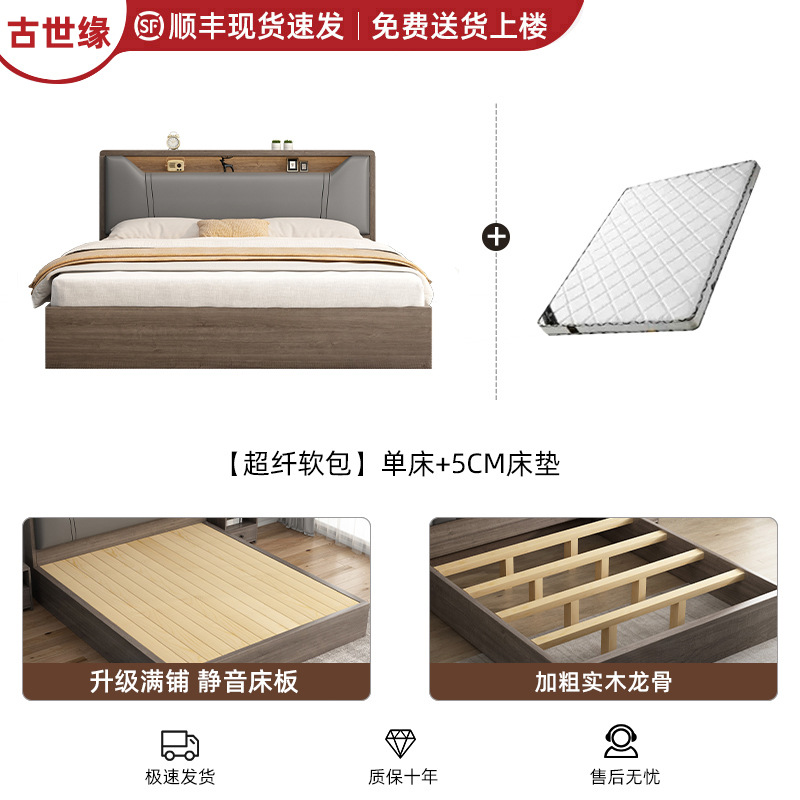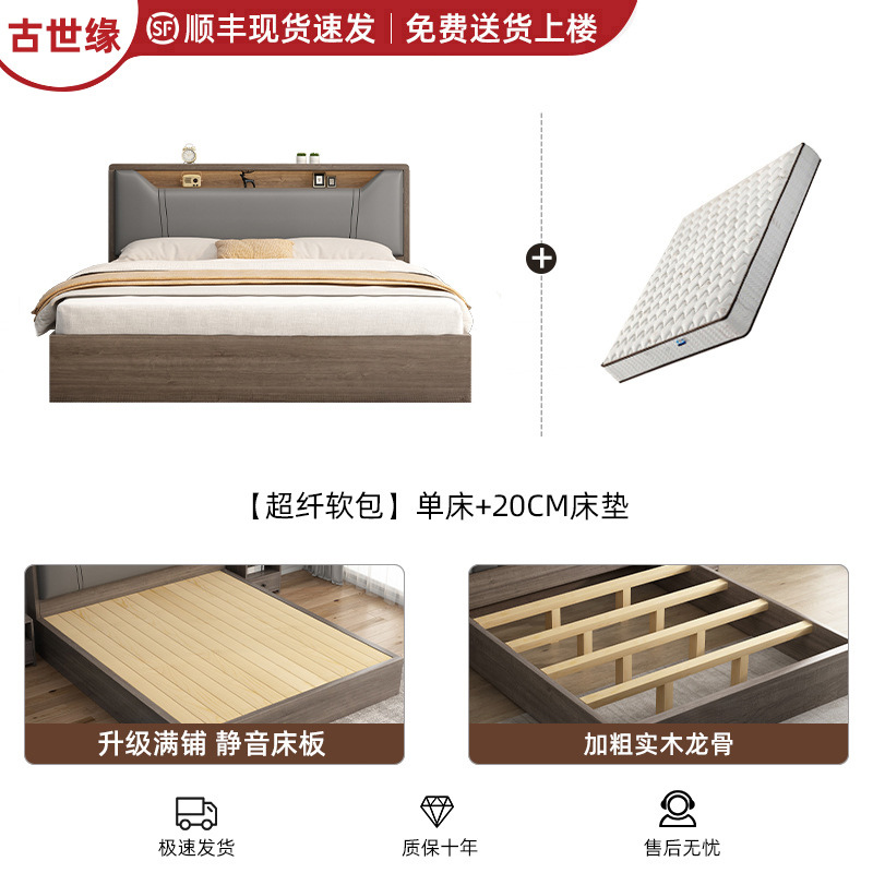 침대 단단한 나무 침대 1.8 m 더블 침대 침실 임대 작은 아파트 유연한 침대 1.2 저장 침대 싱글 침대 프레임스토어 가기
