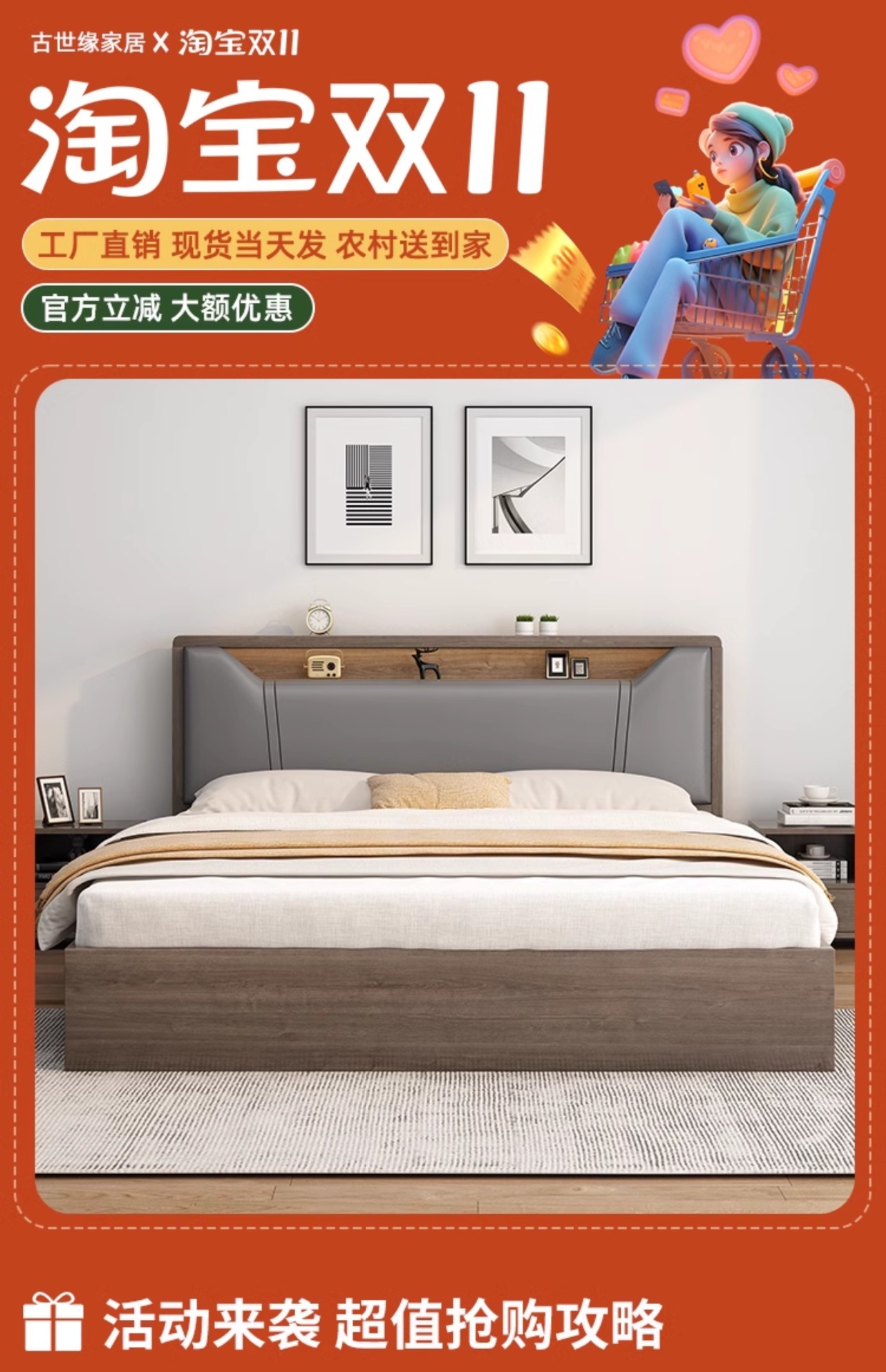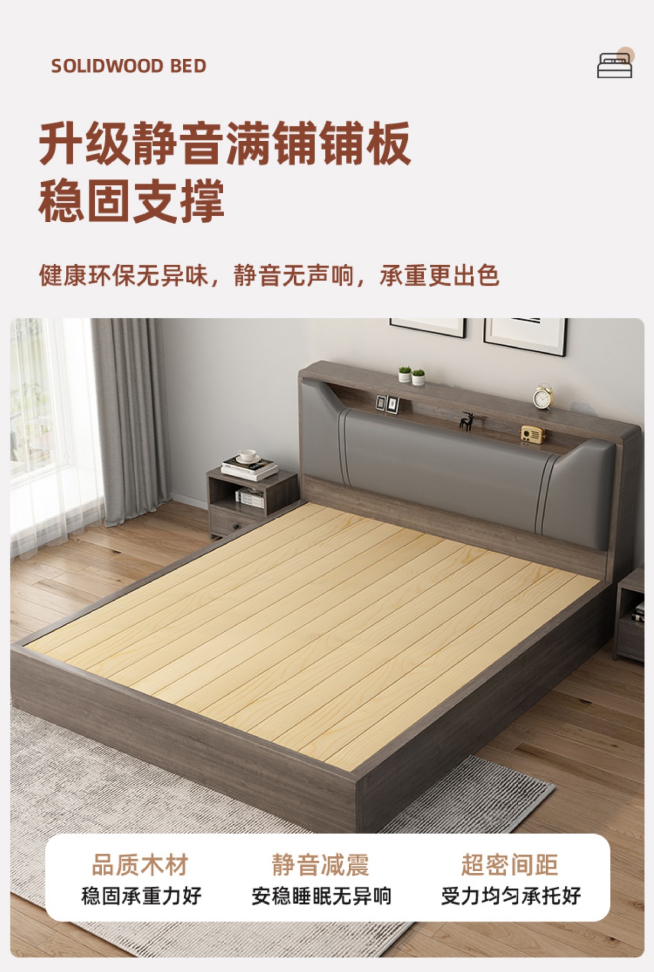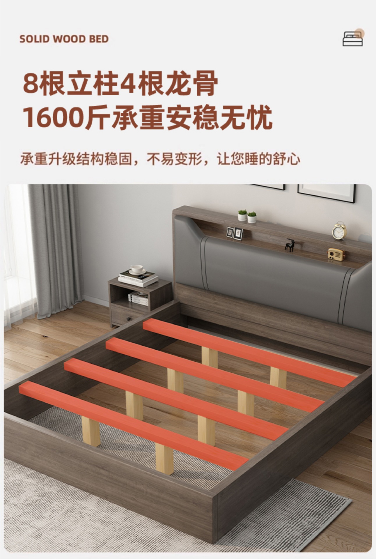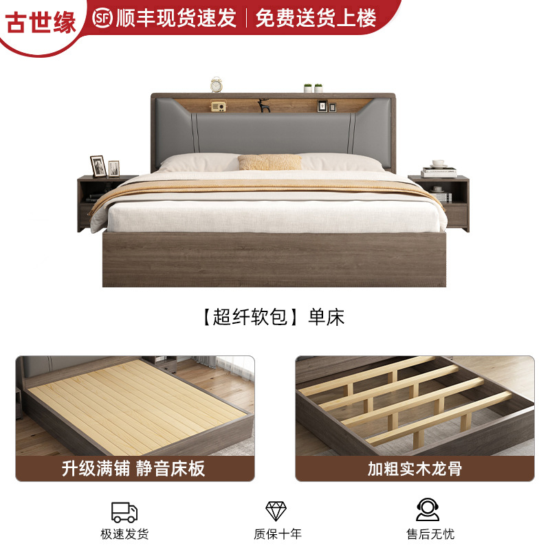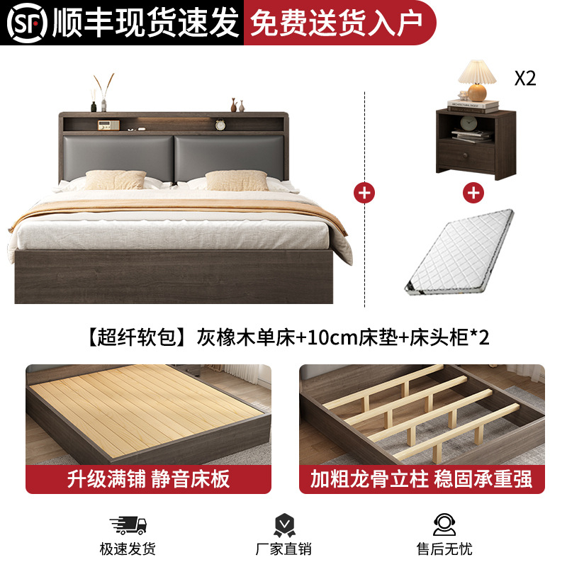 침대 단단한 나무 침대 1.8 m 더블 침대 침실 임대 작은 아파트 유연한 침대 1.2 저장 침대 싱글 침대 프레임스토어 가기