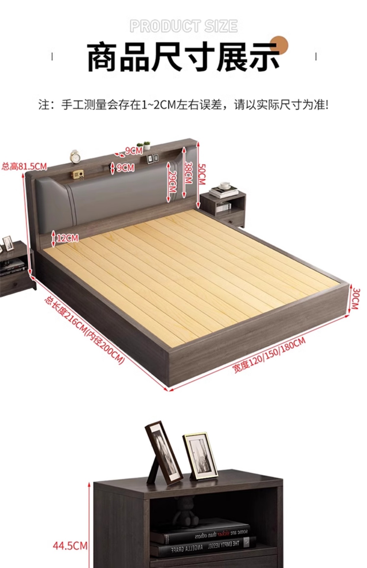 • [색상 비고] 오크 싱글 침대 + 10CM 매트리스 + 침대 옆 탁자 * 1 [위층 설치 패키지]