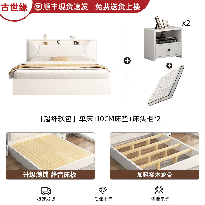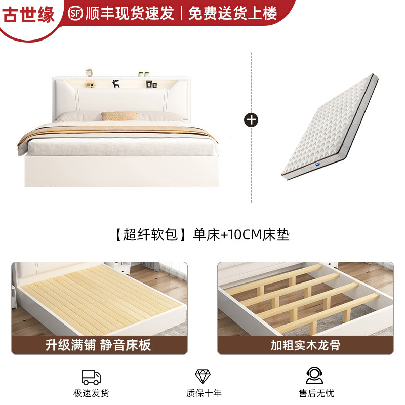 • [풀 플로어 스탠딩 모델] 싱글 침대 웜 화이트 + 10CM 매트리스 + 침대 옆 테이블 * 1 [위층 배송]