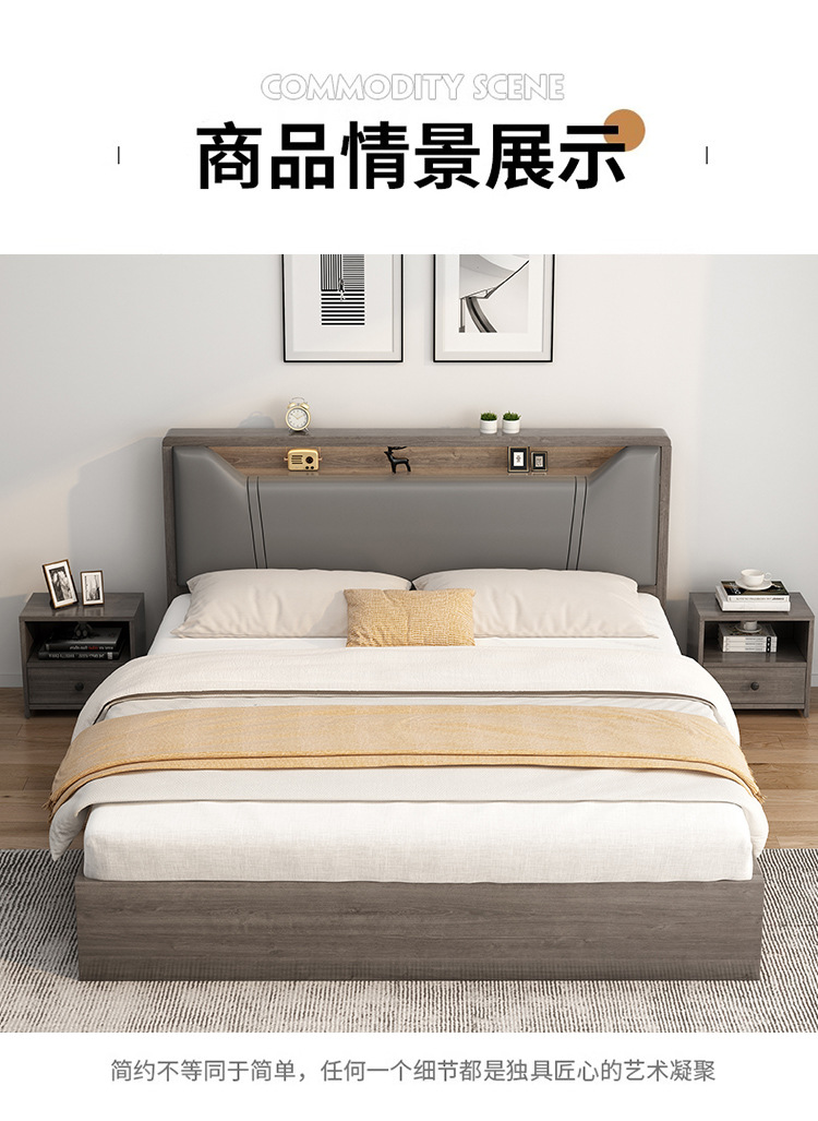 침대 단단한 나무 침대 1.8 m 더블 침대 침실 임대 작은 아파트 유연한 침대 1.2 저장 침대 싱글 침대 프레임