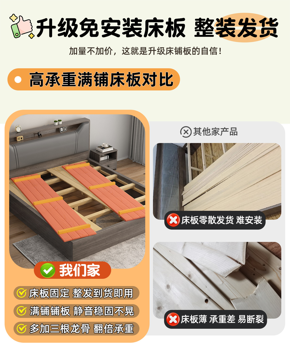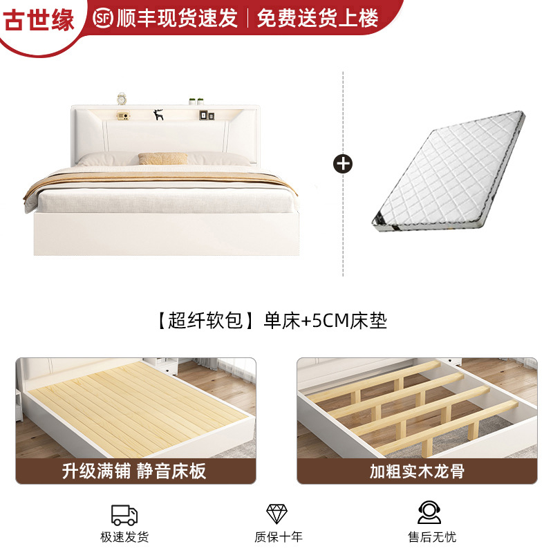 • [풀 플로어 스탠딩 모델] 싱글 침대 웜 화이트 + 5CM 매트리스 + 침대 옆 테이블 * 1 [위층 배송]