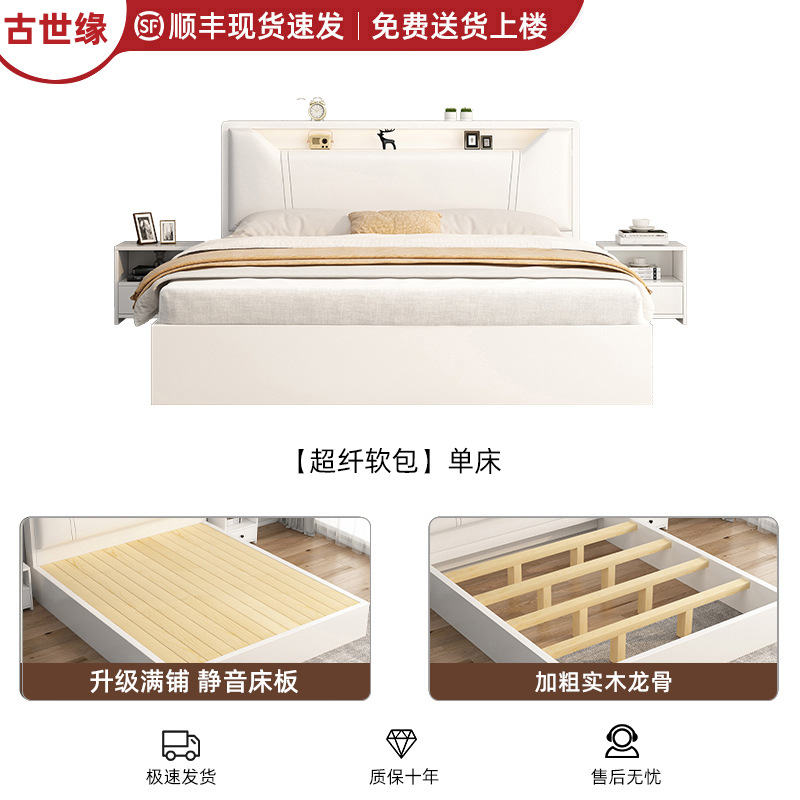 • [풀 플로어 스탠딩 모델] 싱글 침대 웜 화이트 + 침대 옆 탁자*1 [위층 배송]