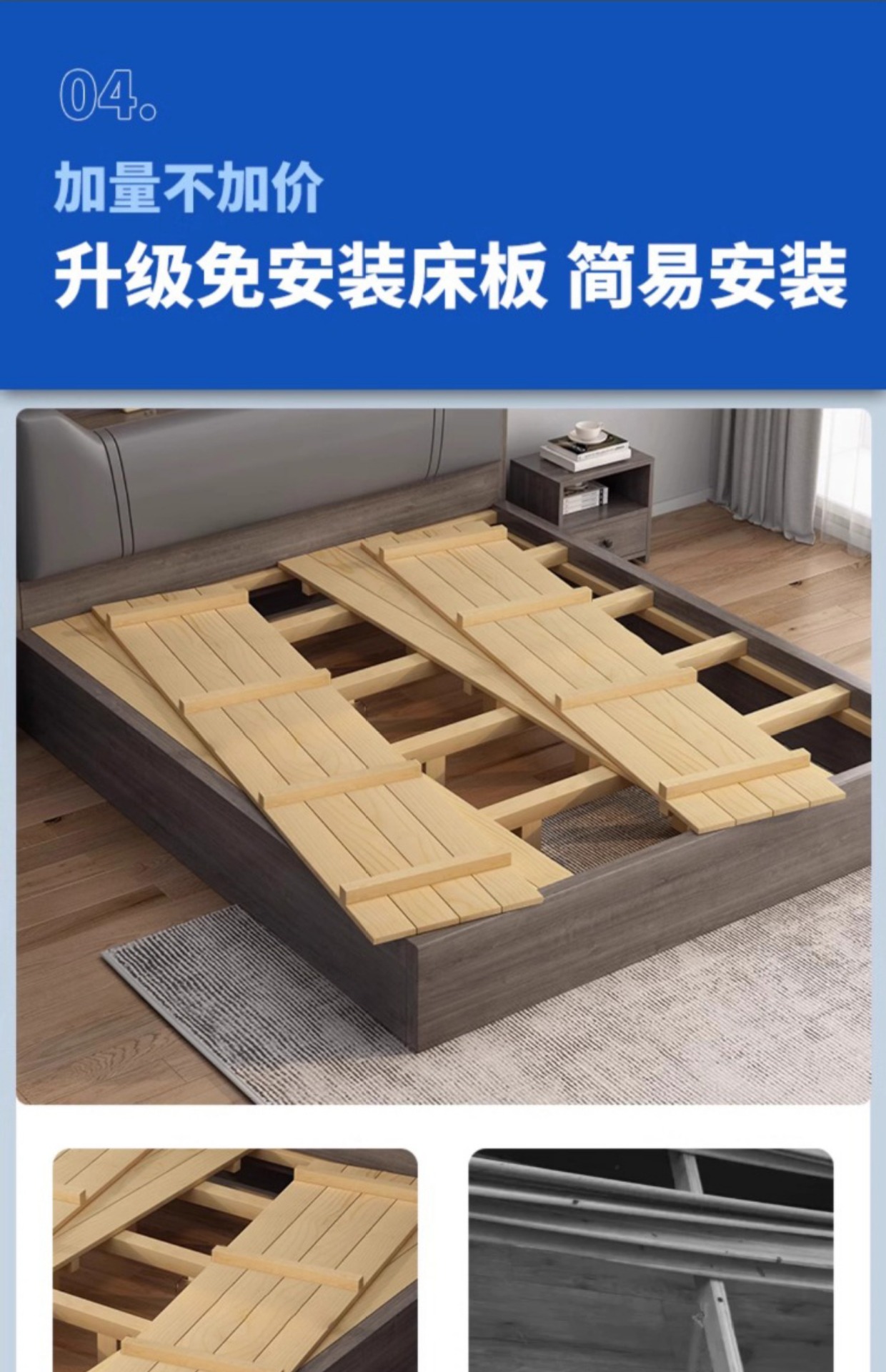 • [색상 비고] 대형 소프트팩 그레이 싱글침대 + 5CM 매트리스 + 침대협탁 * 1 [위층 설치 패키지]