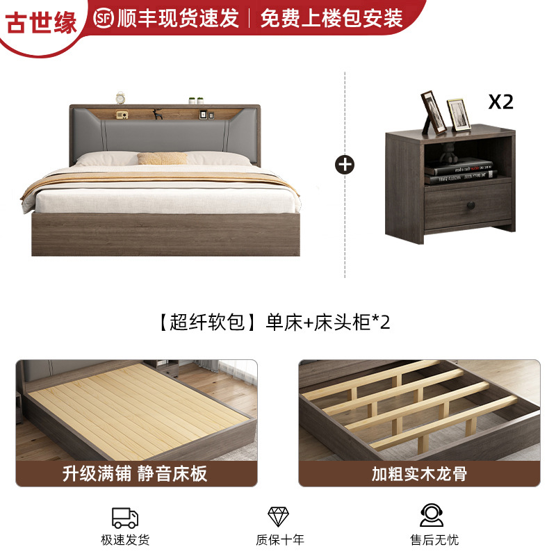 • [색상 비고] 대형 소프트 패키지 그레이 싱글 침대 + 침대 옆 탁자*2 [위층 설치 패키지]