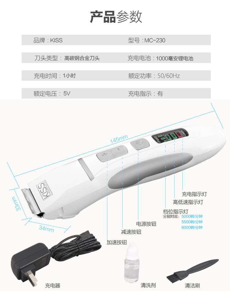 KISS 새로운 보편적 인 전기 아름다움 MC230 개 고양이 모양 면도 발 입 머리 푸시 나이프 충전식 컴팩트스토어 가기