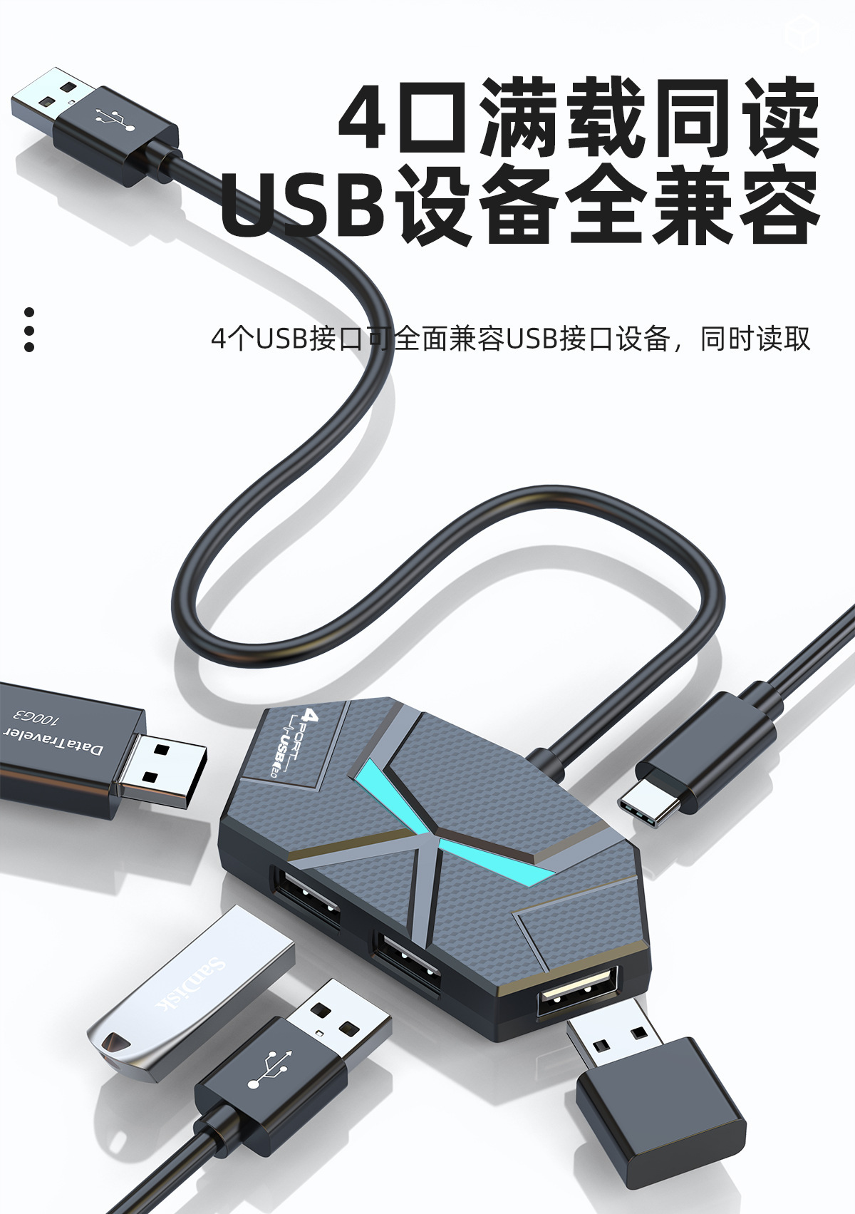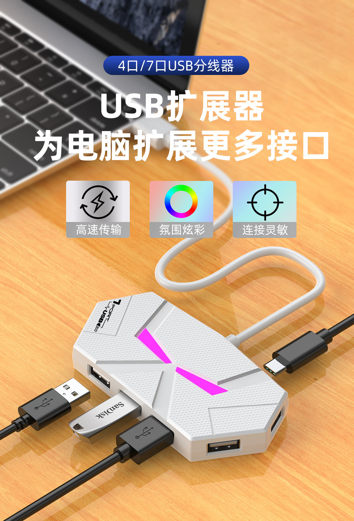 새로운 다채로운 분위기 램프 HUB4 7 2.0 스플리터 확장 노트북 1 드래그 멀티 턴 벨트 전원 공급 장치스토어 가기