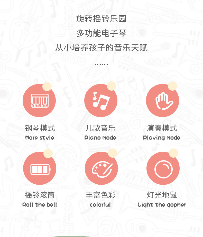 국경 간 퍼즐 음악 왕국 아기 전자 오르간 장난감 다기능 가벼운 아기 조기 교육 노래 이야기
