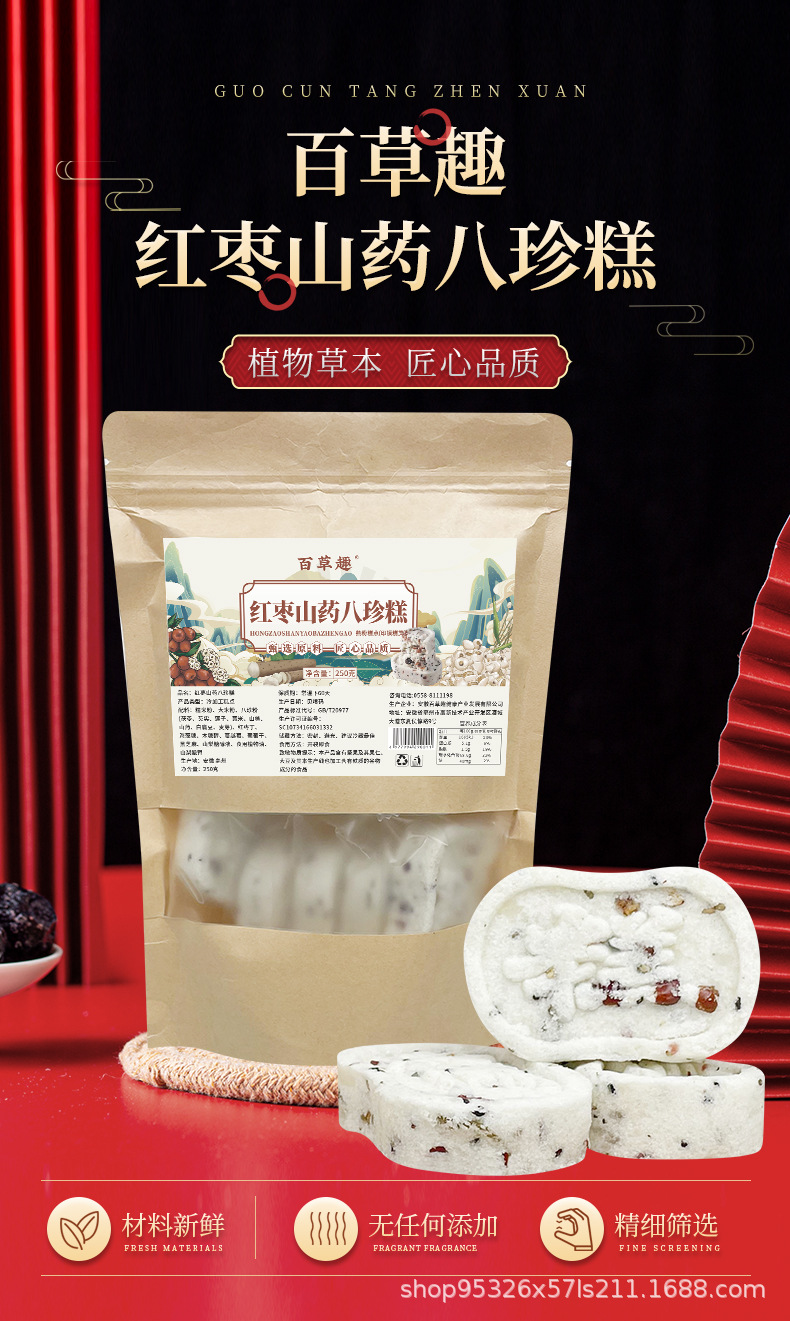 Jujube Yam Bazhen 케이크 전통적인 패스트리 오픈 백 인스턴트 독립 포장 소스 공장 공급 대량 도매