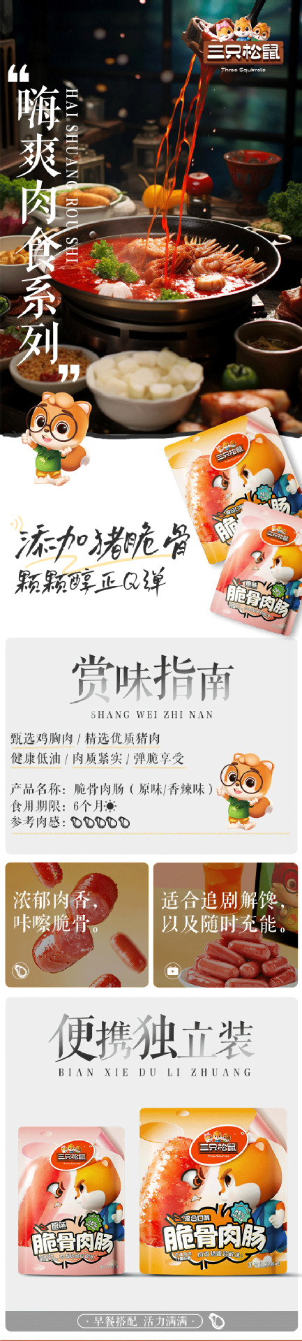 [Three Squirrels_Crispy Bone, 고기와 소시지 혼합 맛] 캐주얼하고 탐욕스러운 작은 소시지 간식 계량 및 무게 측정스토어 가기