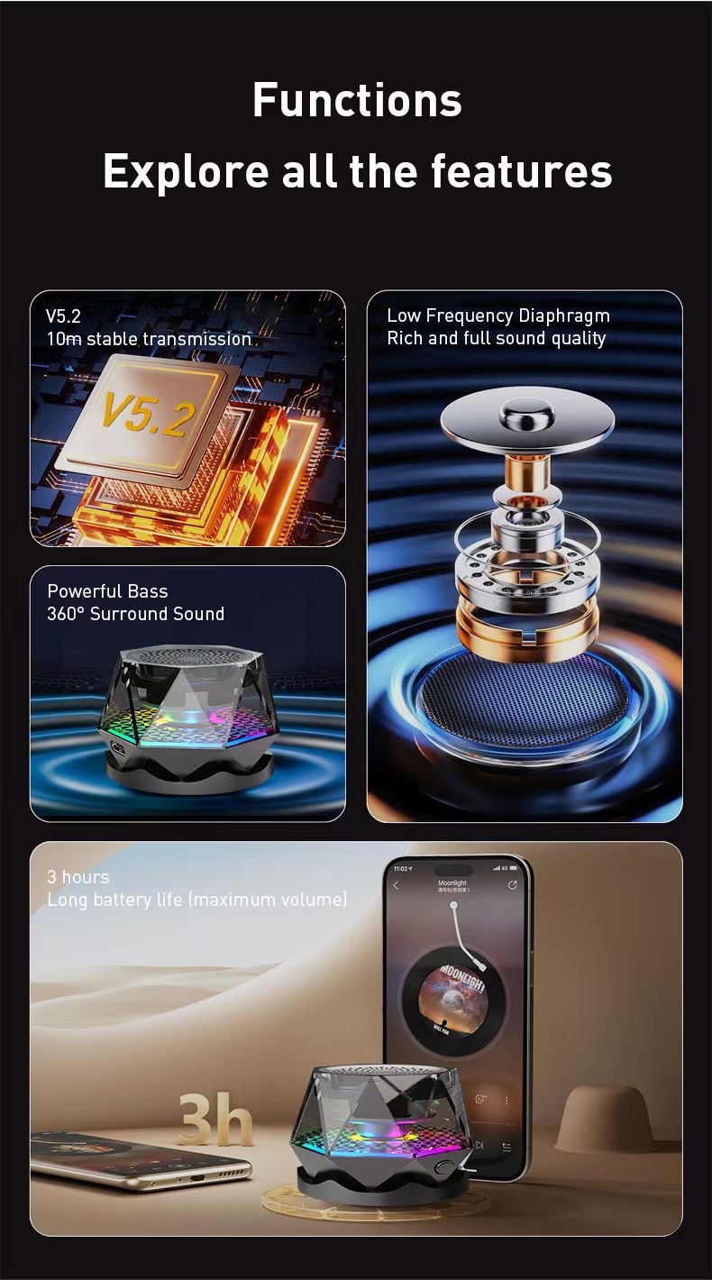 자석식 다이아몬드 블루투스 스피커 G200 편리한 미니 무드등 서브우퍼 소형 스피커 G300 휴대용 스피커스토어 가기