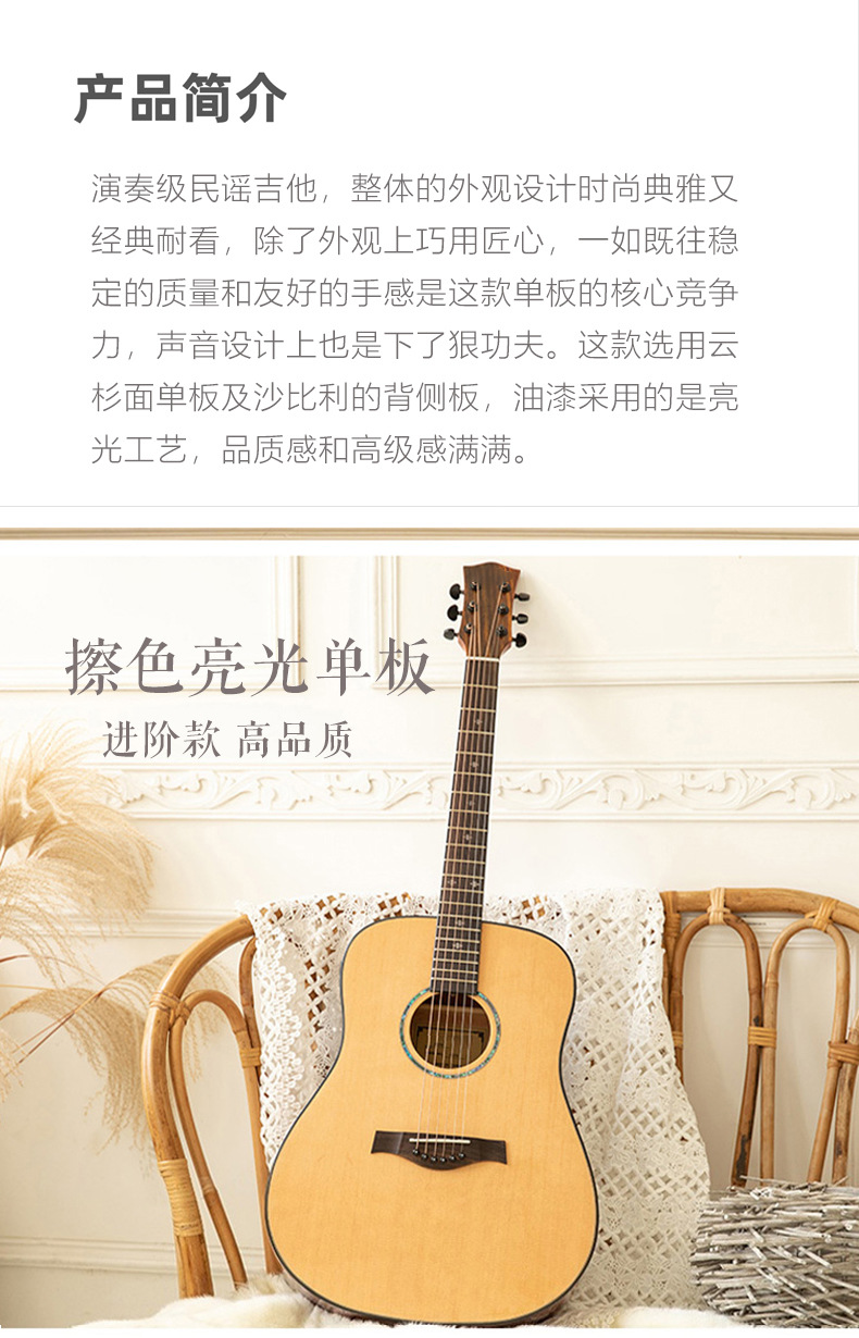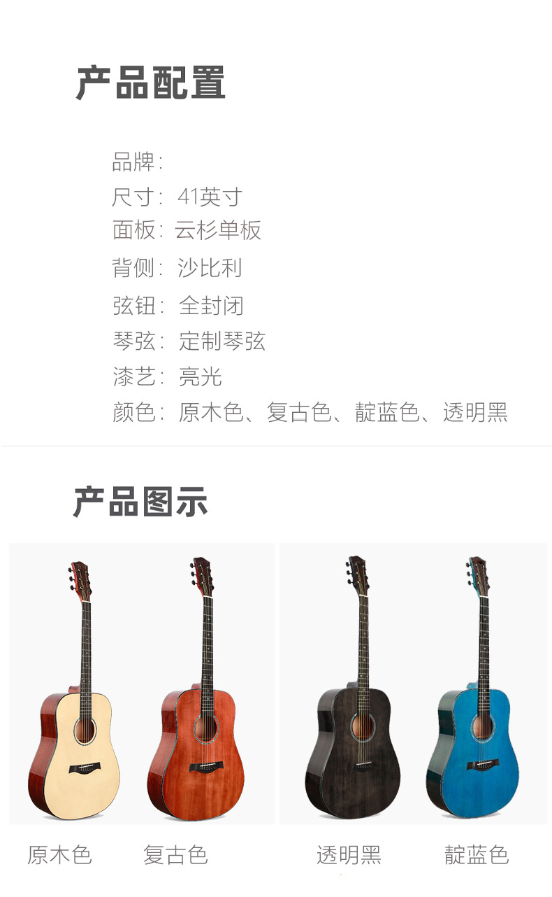 Folk 41inch 밝은 목재 기타 초보자 초보자 학생 남성과 여성 초급 연습 피아노 재고 있음 공장 배송