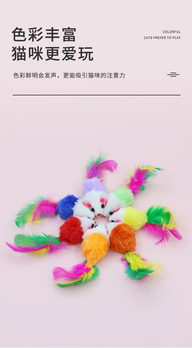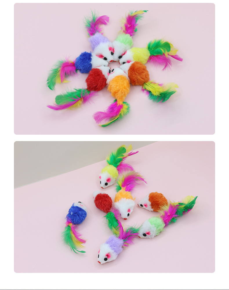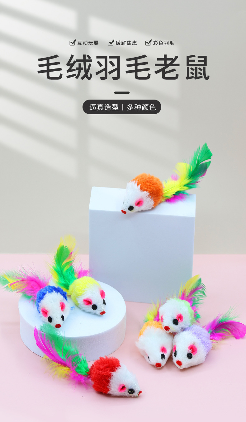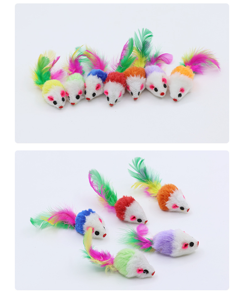 애완 동물 용품 도매 컬러 깃털 꼬리 작은 마우스 고양이 장난감 현실적인 봉제 마우스 시뮬레이션 마우스스토어 가기