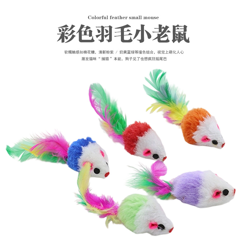 애완 동물 용품 도매 컬러 깃털 꼬리 작은 마우스 고양이 장난감 현실적인 봉제 마우스 시뮬레이션 마우스