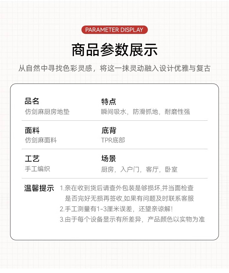 주방 바닥 매트 미끄럼 방지 오일-증거 먼지 방지 방증 먼지 방지 먼지 방지 입구 문 매트 모방 Sisal 황마 스트립 카펫