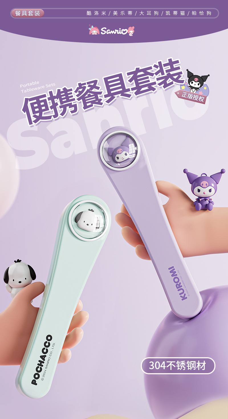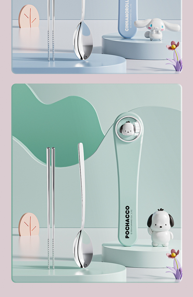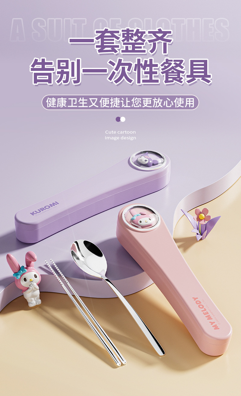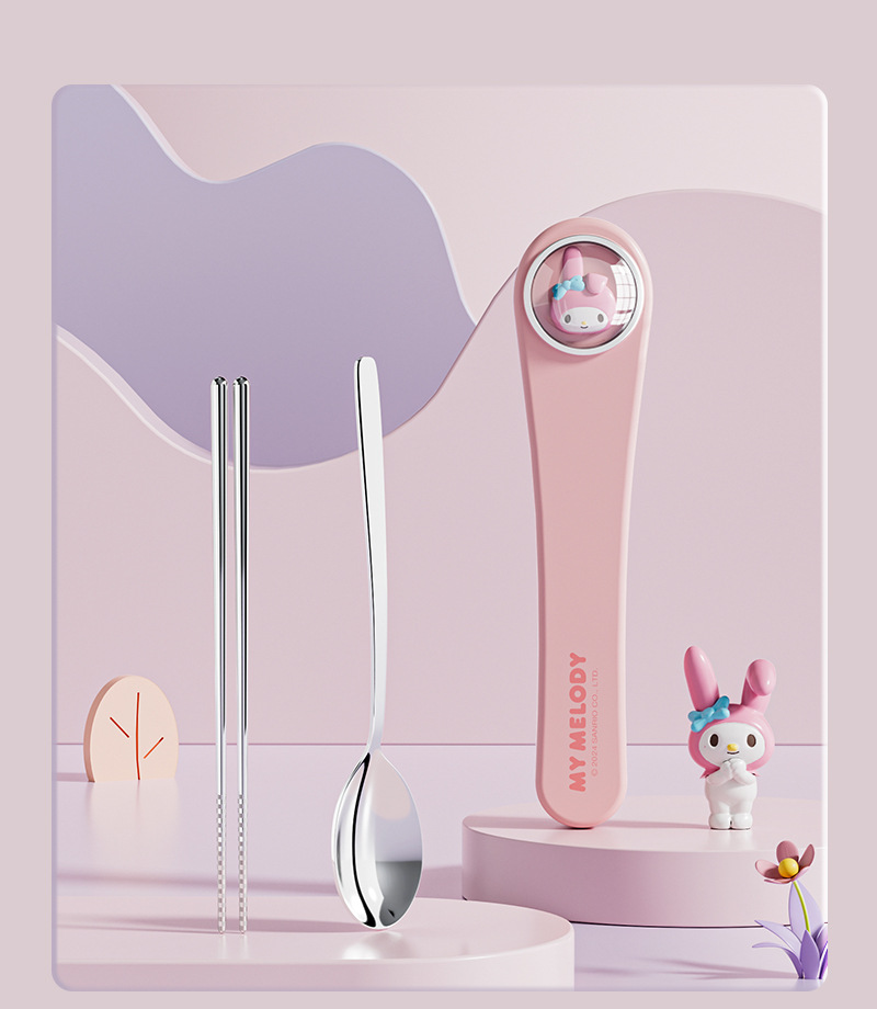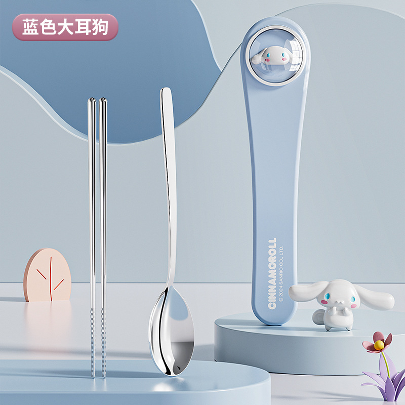 304 스테인레스 스틸 정품 산리오 스푼 젓가락 세트 큰 귀 개 쿨로 미 만화 귀여운 휴대용 식기 세트스토어 가기