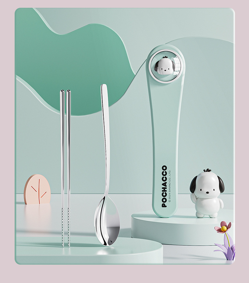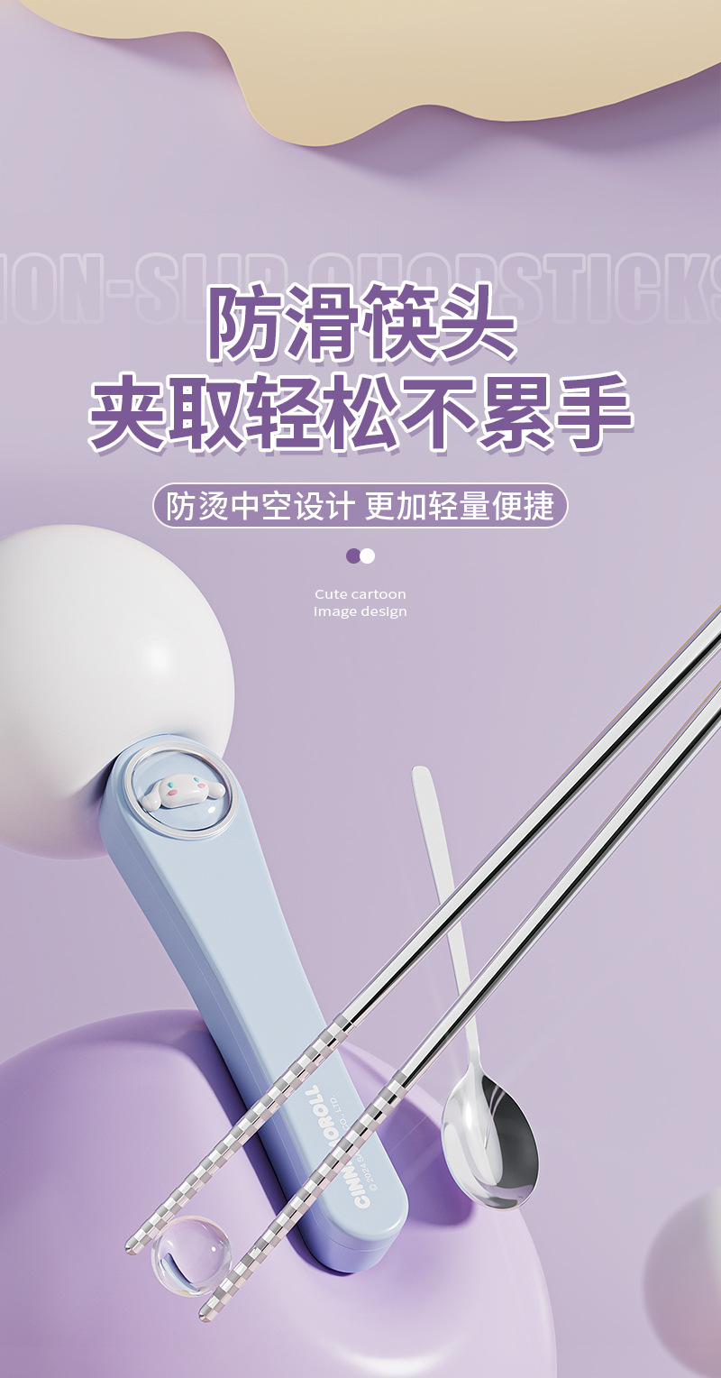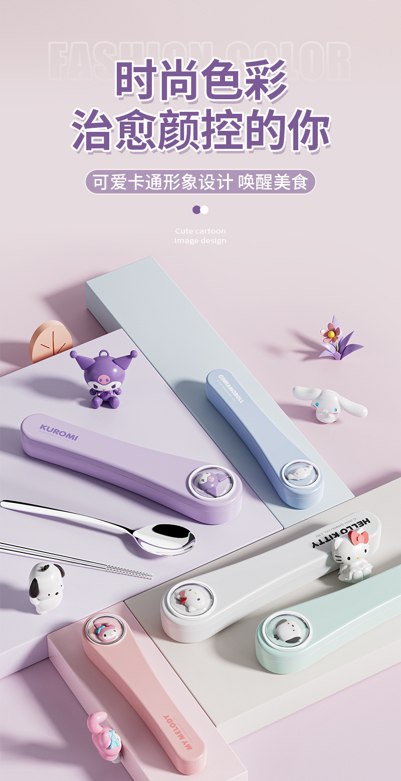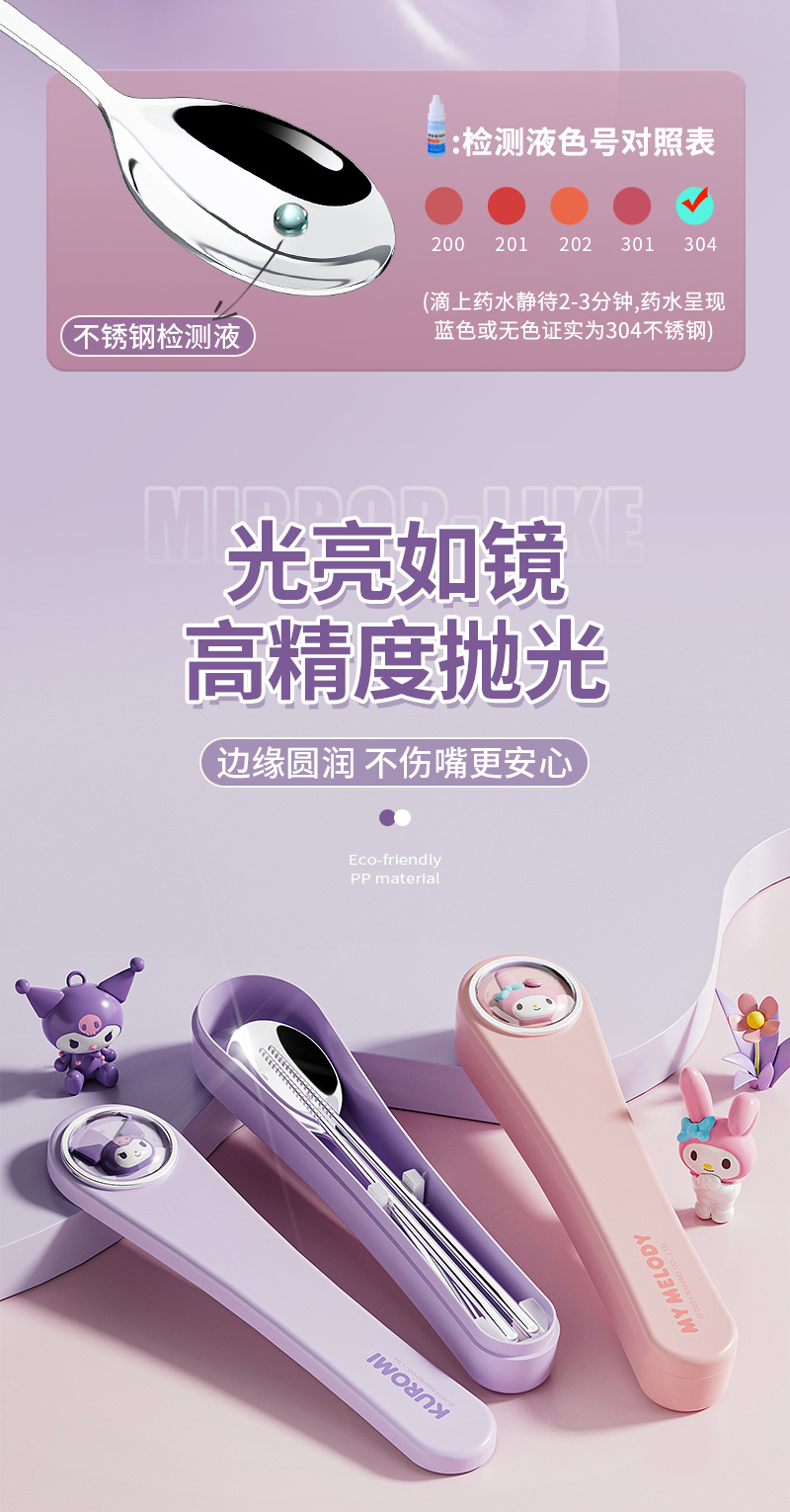 304 스테인레스 스틸 정품 산리오 스푼 젓가락 세트 큰 귀 개 쿨로 미 만화 귀여운 휴대용 식기 세트스토어 가기
