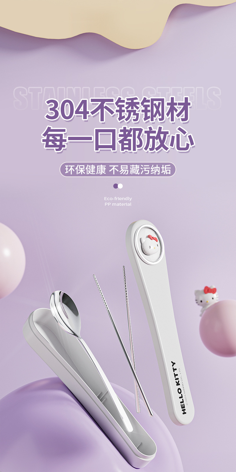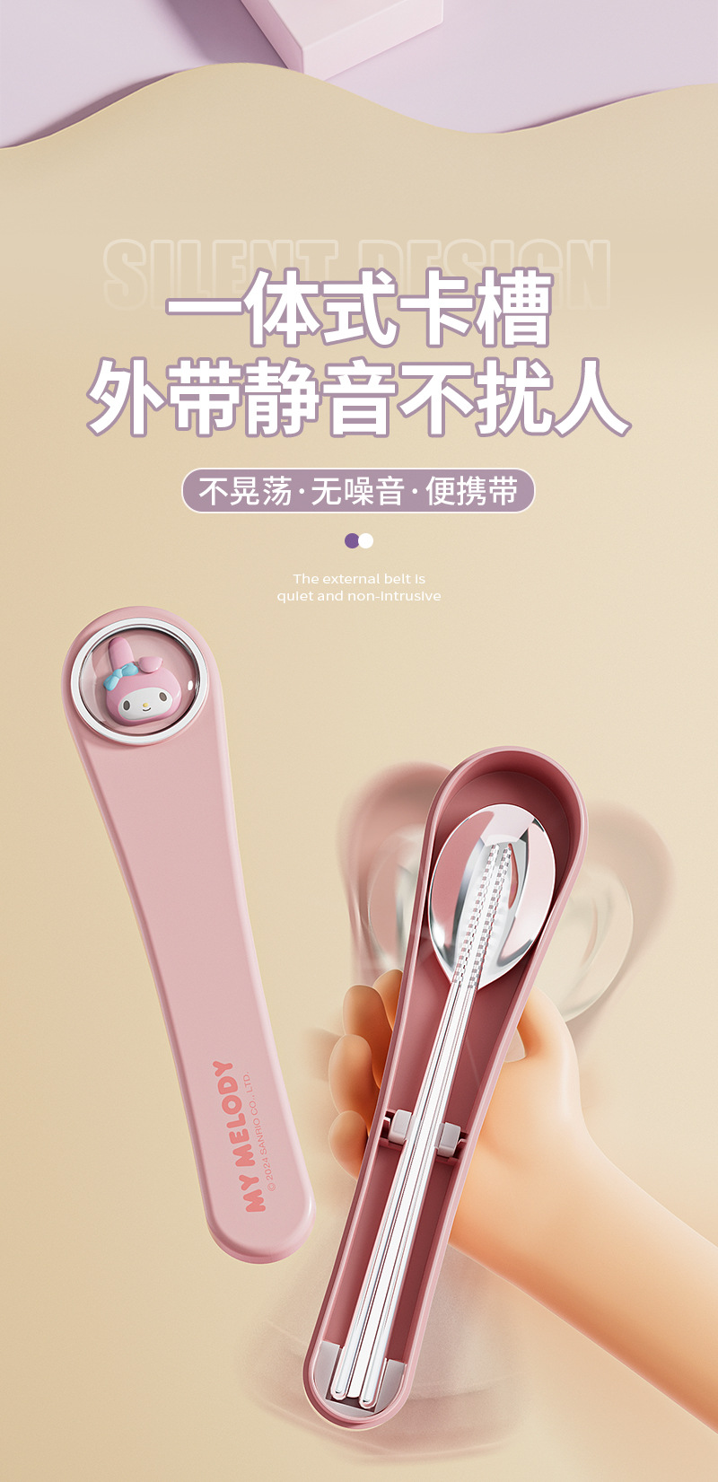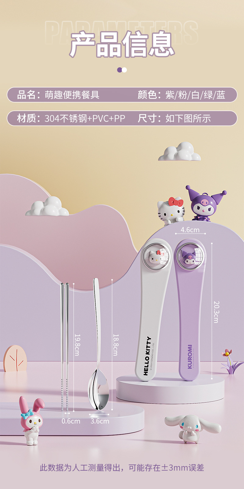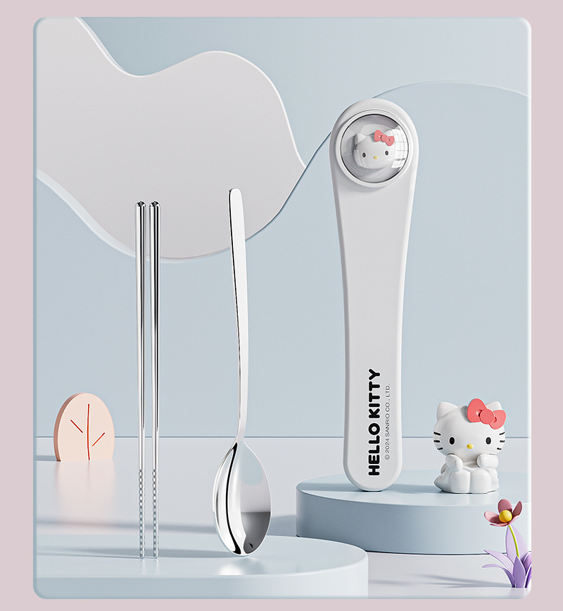 304 스테인레스 스틸 정품 산리오 스푼 젓가락 세트 큰 귀 개 쿨로 미 만화 귀여운 휴대용 식기 세트스토어 가기