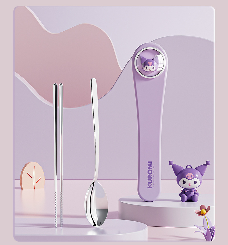 304 스테인레스 스틸 정품 산리오 스푼 젓가락 세트 큰 귀 개 쿨로 미 만화 귀여운 휴대용 식기 세트