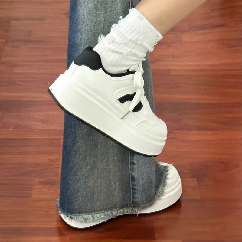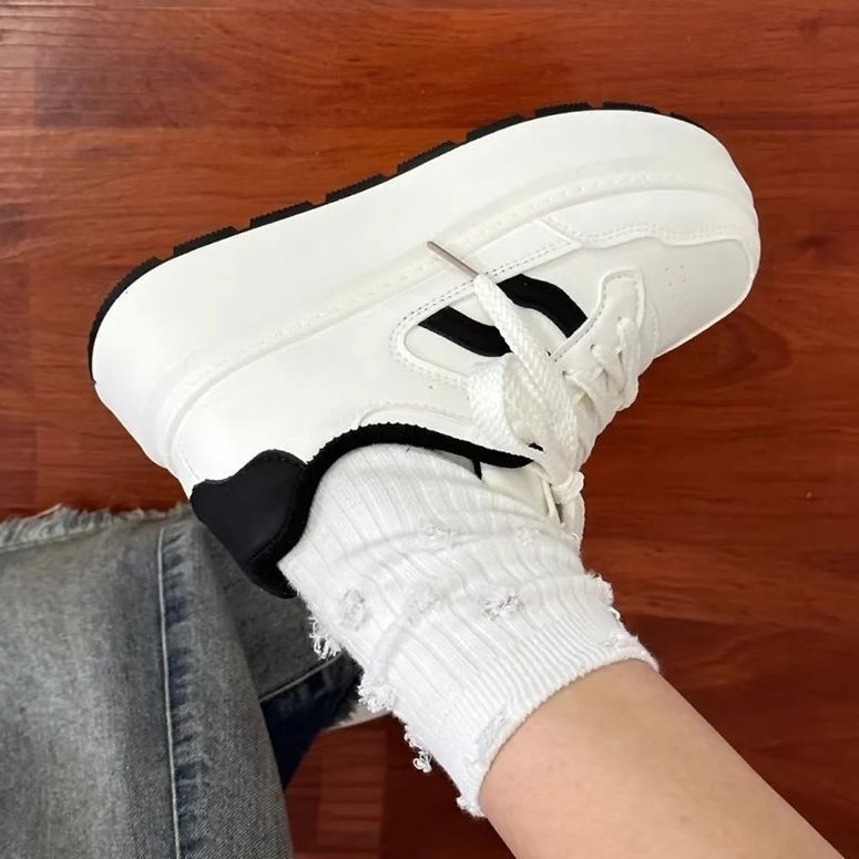 여성을위한 흑백 대비 색상 두꺼운 밑창 흰색 신발 2025 가을 새로운 기능 경량 통기성 학생 다목적 강화 운동화스토어 가기
