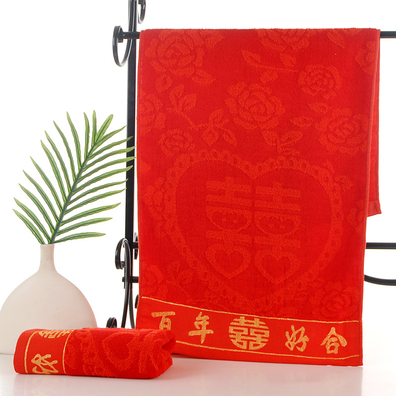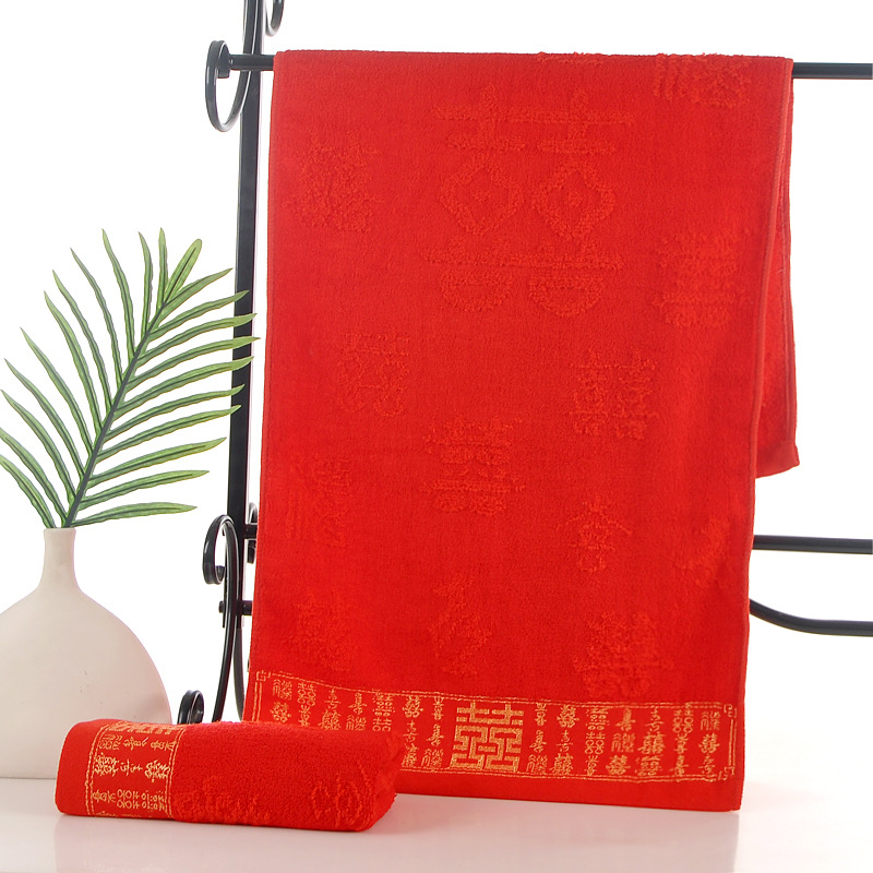 웨딩 레드 타월 반환 선물 세척 수건 확장 수건 행복한 단어 행운의 단어 웨딩 타월 부드러운 흡수성 목욕 타월