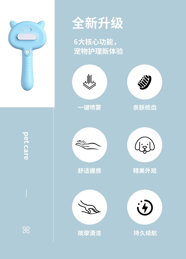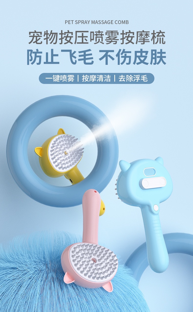 국경 간 푸시 형 애완 동물 스프레이 빗 마사지 브러시 고양이와 개 청소 고양이 머리 제거 빗 비행 방지 애완 동물 용품스토어 가기