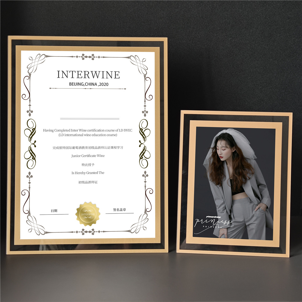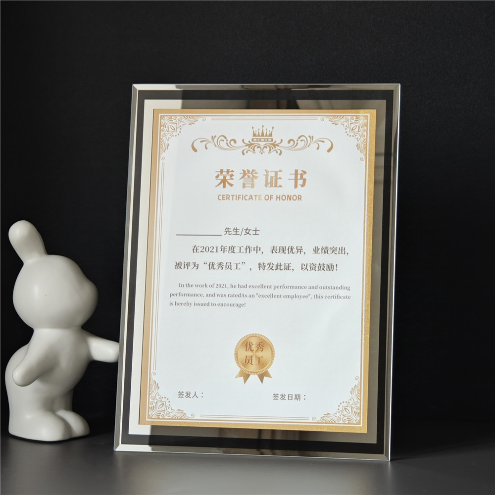 간단한 A4 크리스탈 인증서 사진 프레임 테이블 연구 데스크톱 인증서 디스플레이 프레임 회사 인증 유리 인증서 프레임