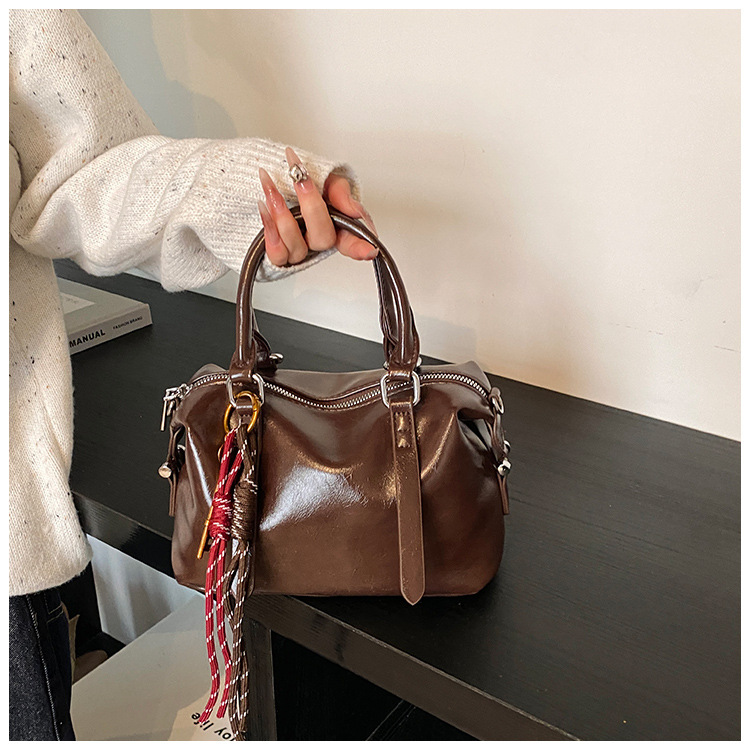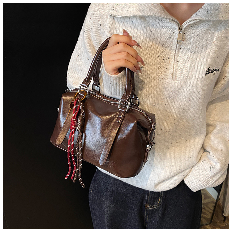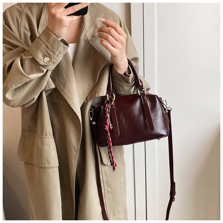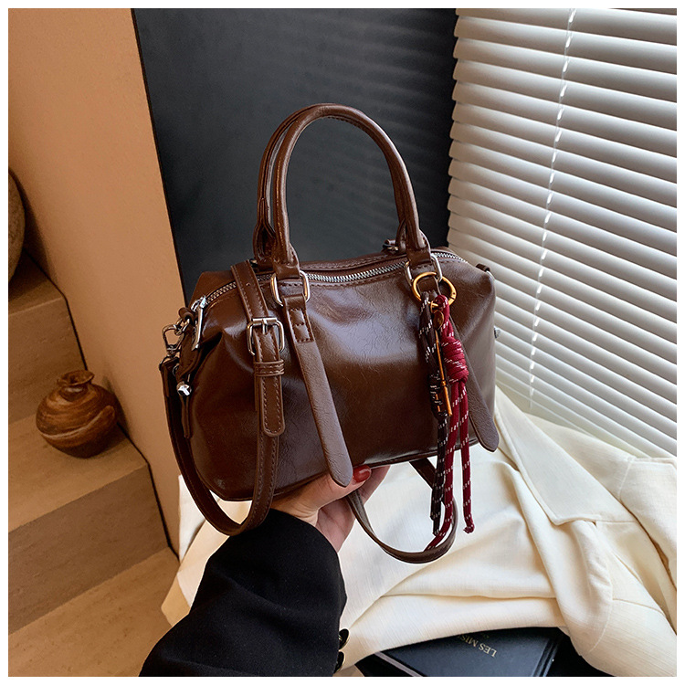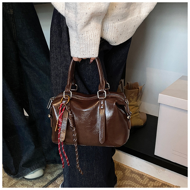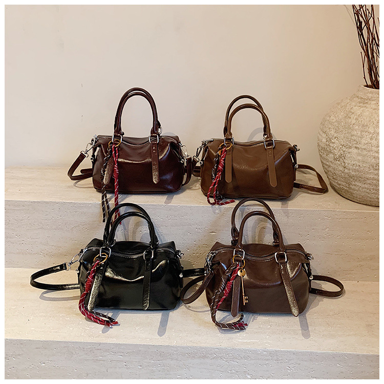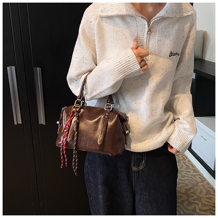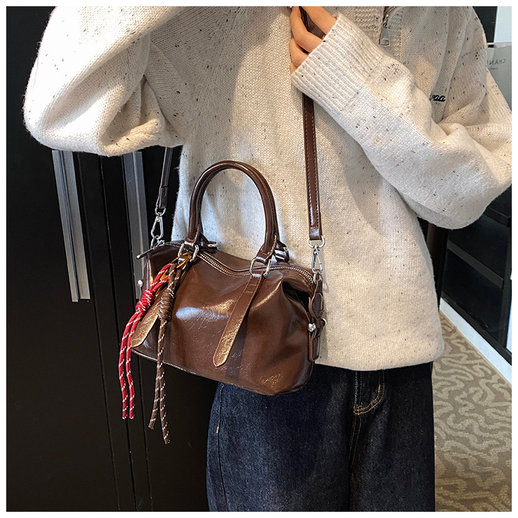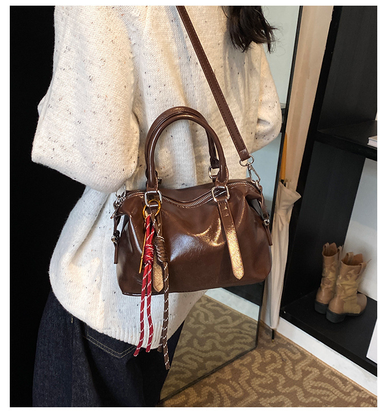 하이 엔드 레트로 오일 왁스 가죽 가방 여성의 2024 새로운 가을 및 겨울 모든 경기 통근 크로스 백 휴대용 보스턴 가방