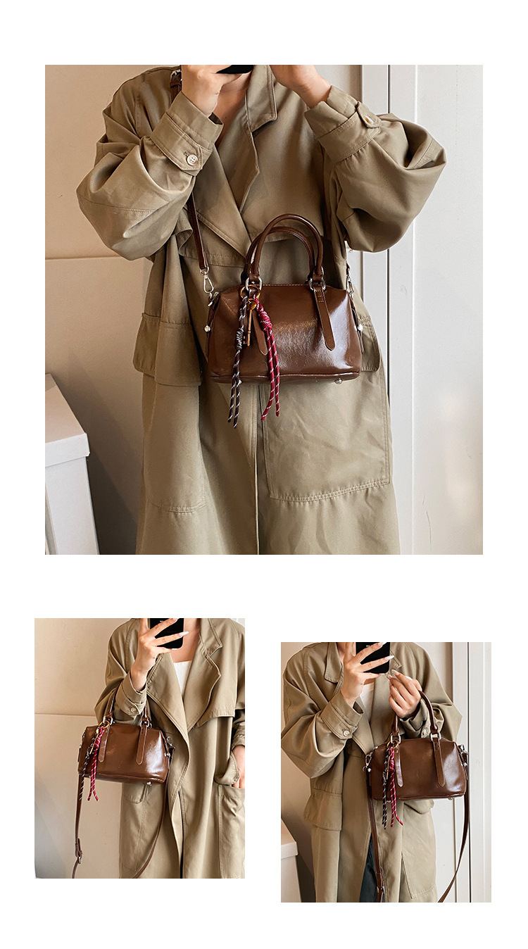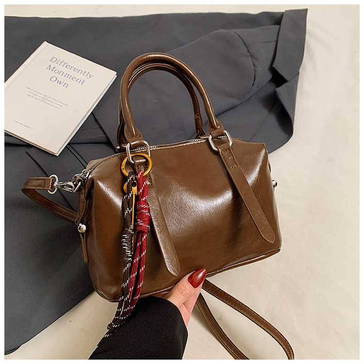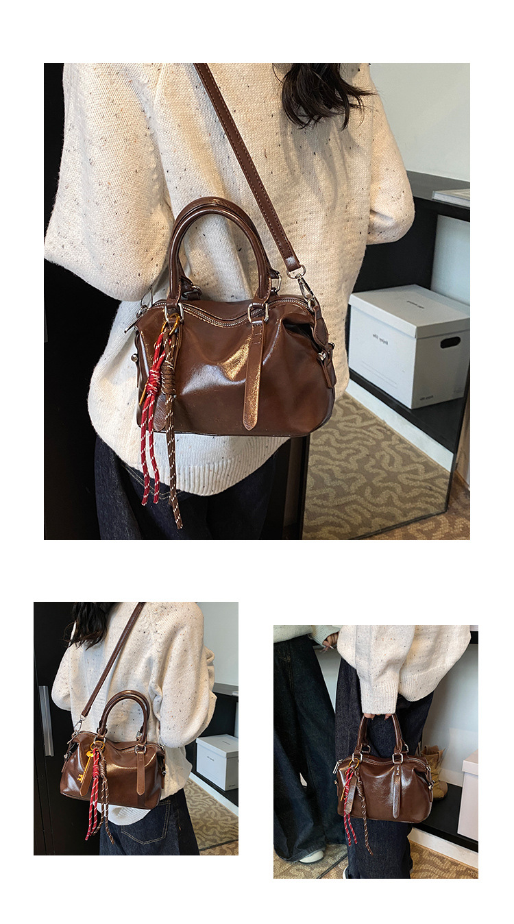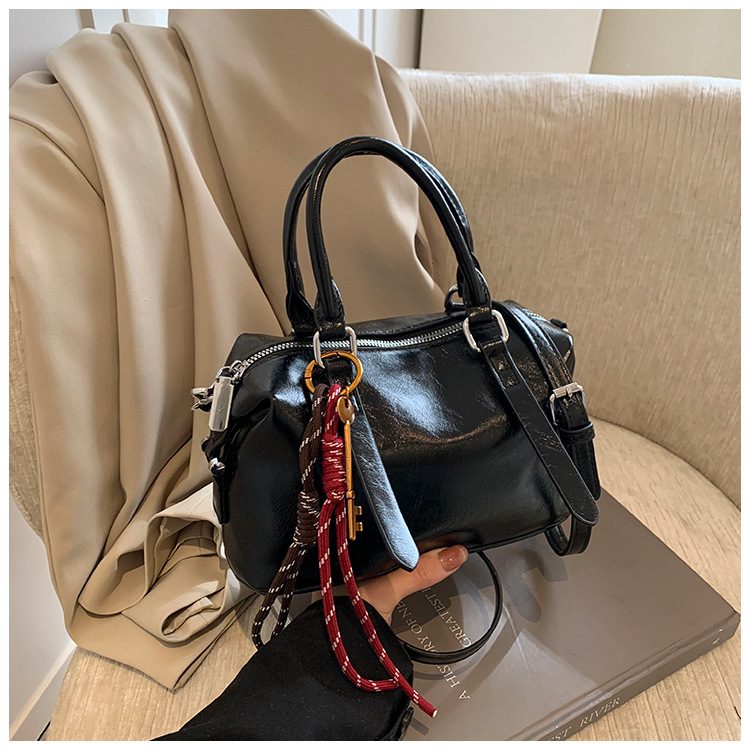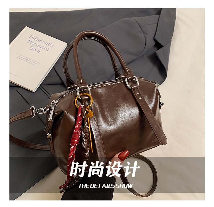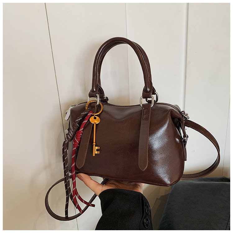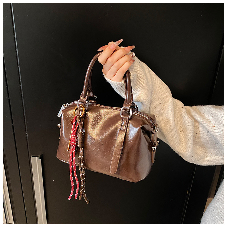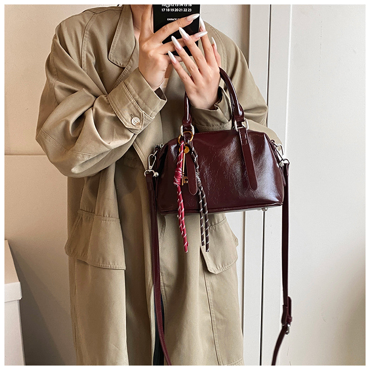 하이 엔드 레트로 오일 왁스 가죽 가방 여성의 2024 새로운 가을 및 겨울 모든 경기 통근 크로스 백 휴대용 보스턴 가방