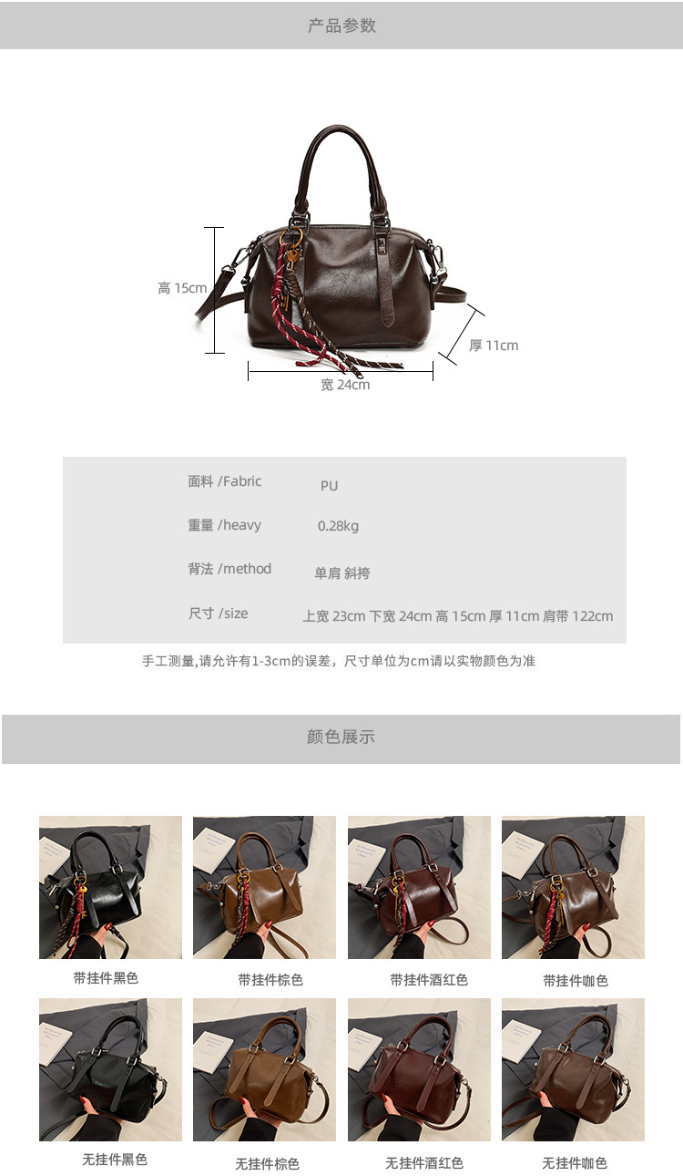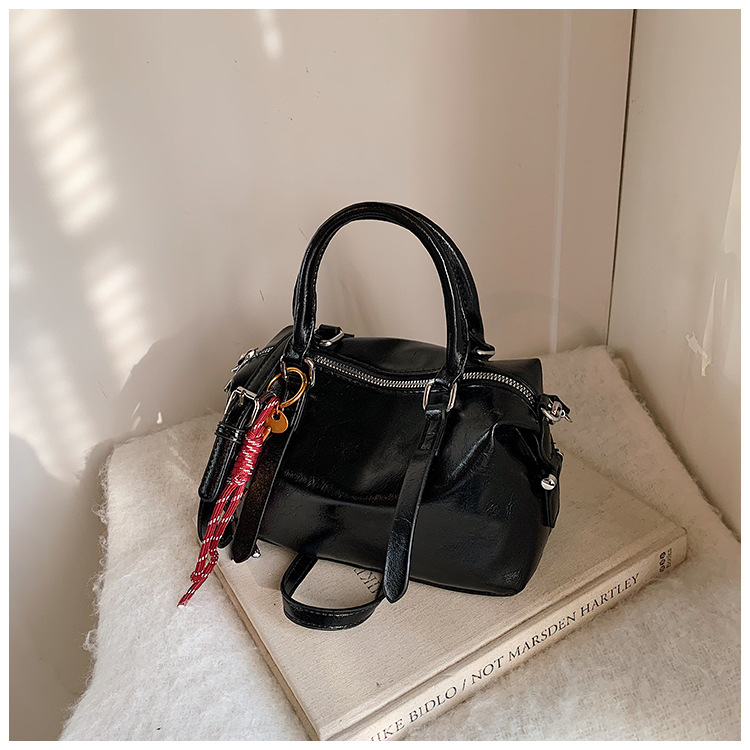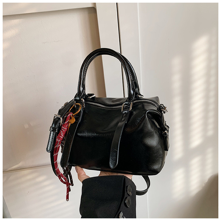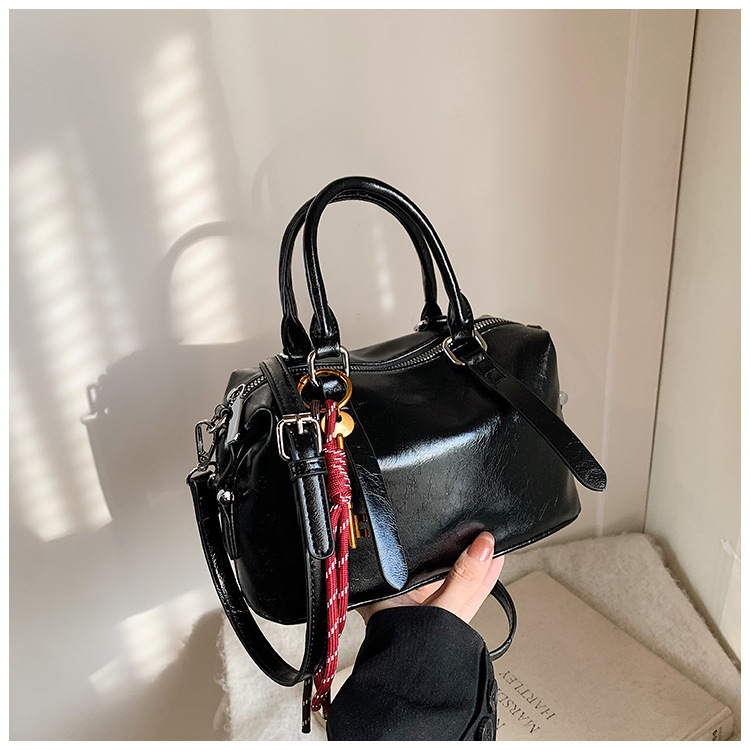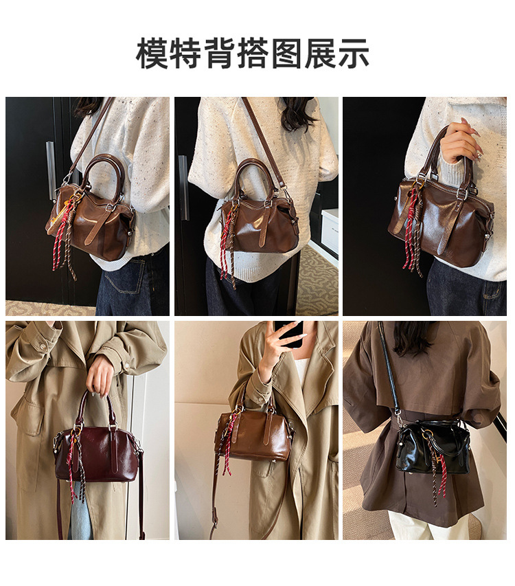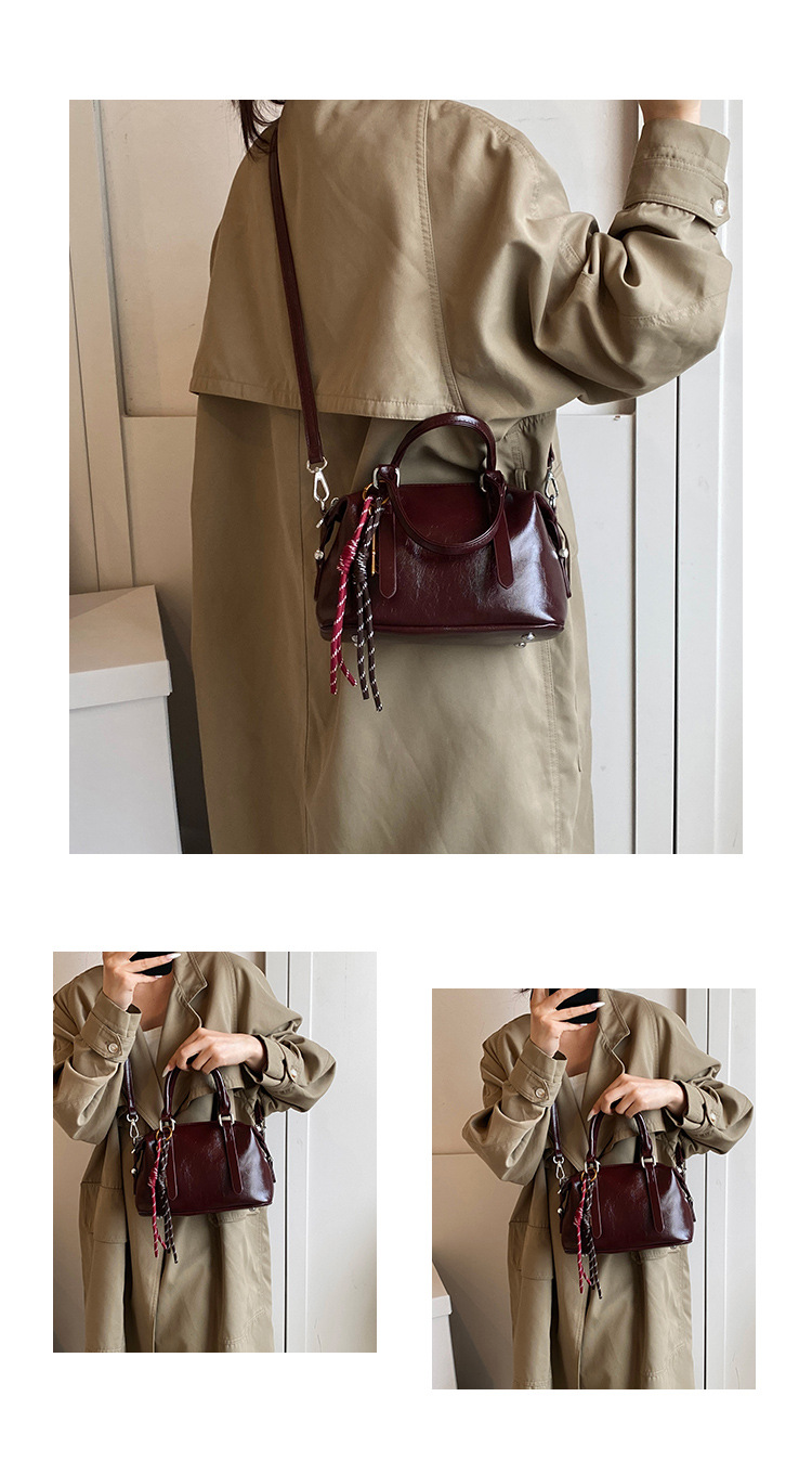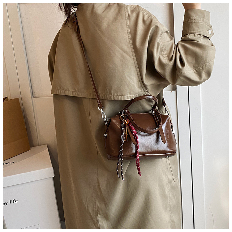 하이 엔드 레트로 오일 왁스 가죽 가방 여성의 2024 새로운 가을 및 겨울 모든 경기 통근 크로스 백 휴대용 보스턴 가방