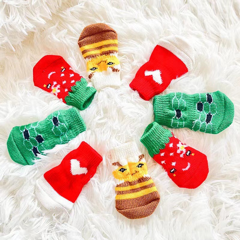 순수한 면 니트 애완 동물 양말 실내 미끄럼 방지 따뜻한 강아지 신발 및 양말 Teddy Bixiong 작은 개 양말 애완 동물 양말스토어 가기