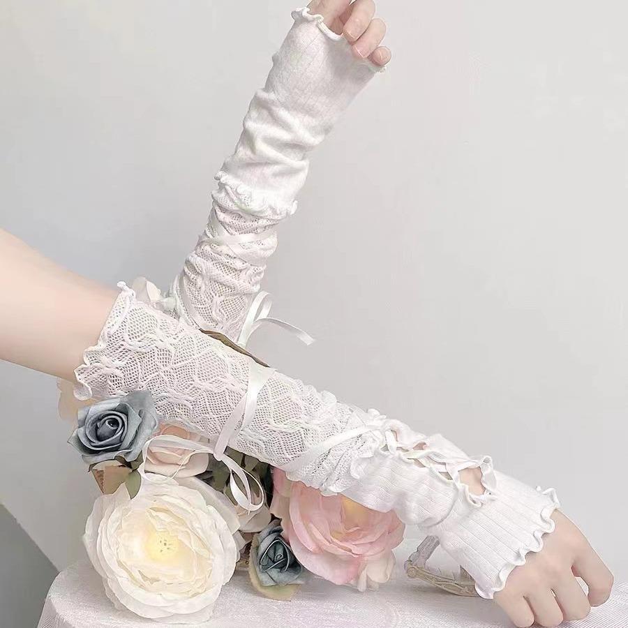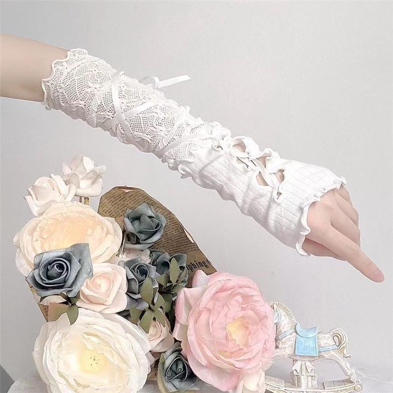 블랙 롱 장갑 로리타 레이스 핸드 슬리브 여성용 바느질 발레 스타일 실크 스트랩 팔 슬리브 코스 스위트 쿨 스타일