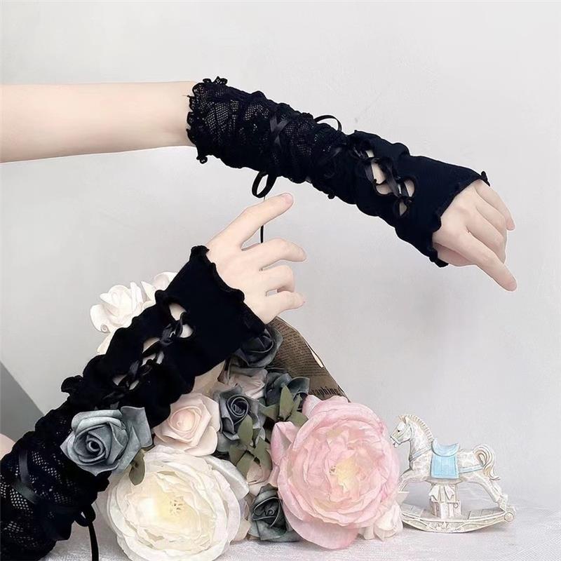 블랙 롱 장갑 로리타 레이스 핸드 슬리브 여성용 바느질 발레 스타일 실크 스트랩 팔 슬리브 코스 스위트 쿨 스타일스토어 가기