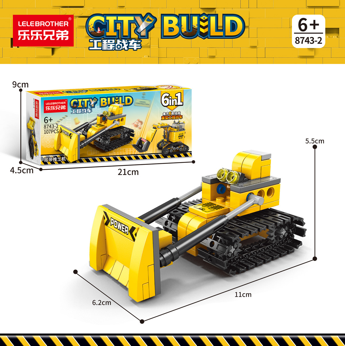 • 엔지니어링 크롤러 불도저-107 입자 [21CM 컬러 박스]
