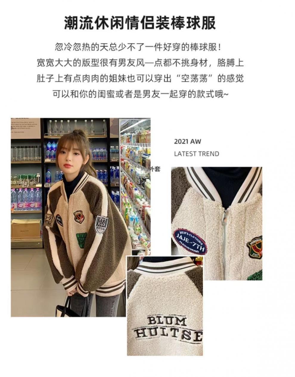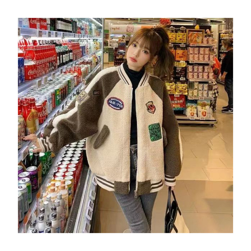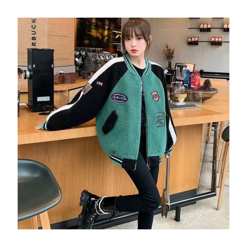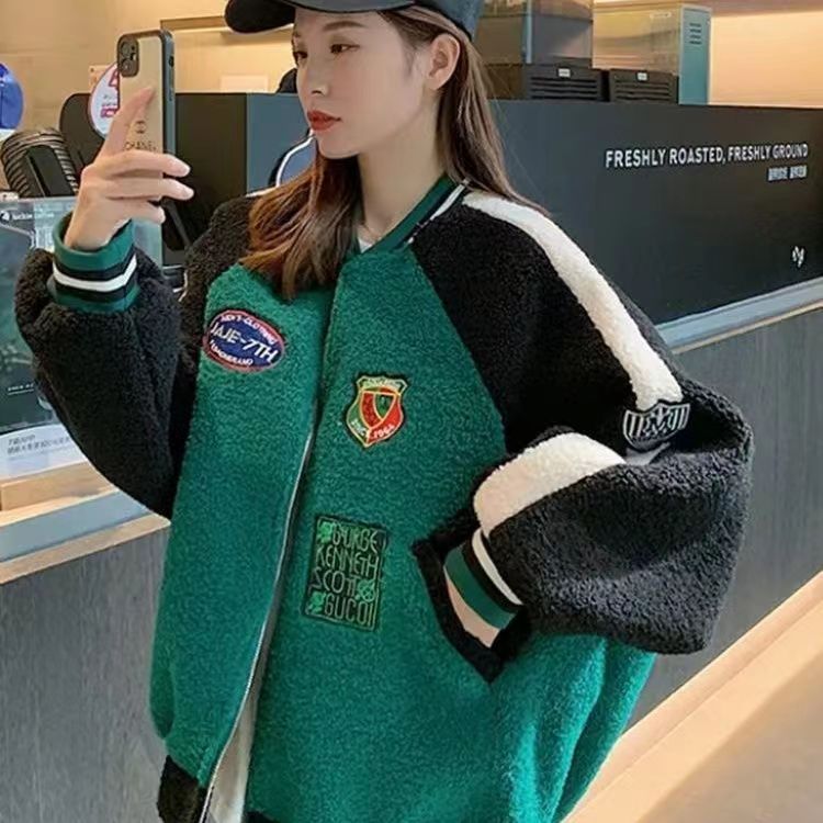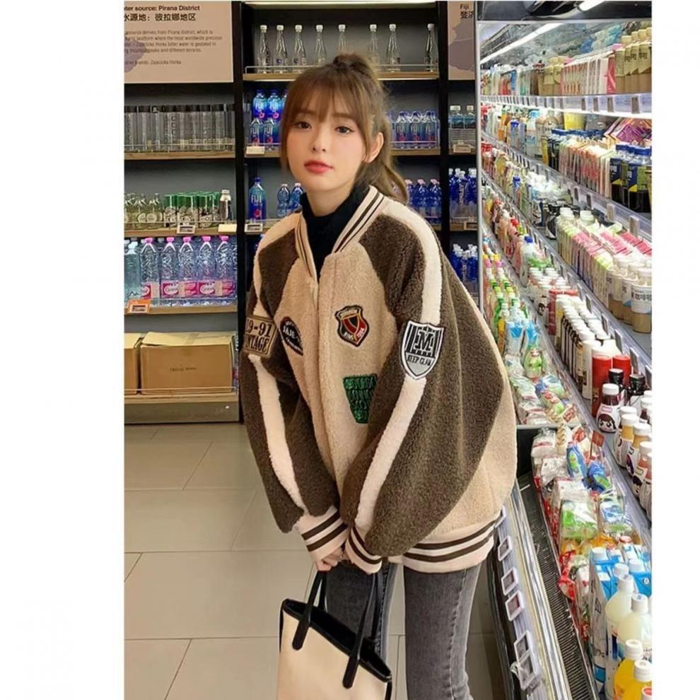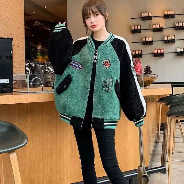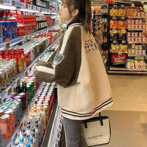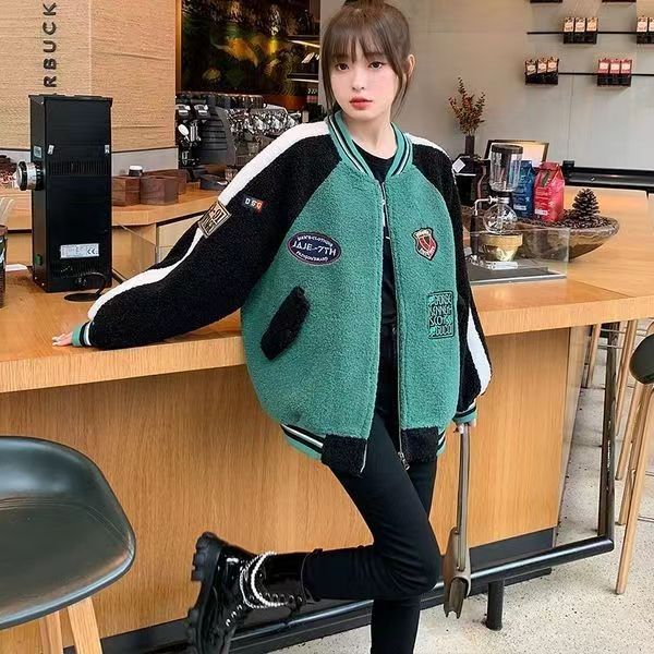코트 여자 유럽 역 2025 가을/겨울 새로운 느슨한 플러스 사이즈 야구 세트 학생 재킷 두꺼운 양고기 양모스토어 가기