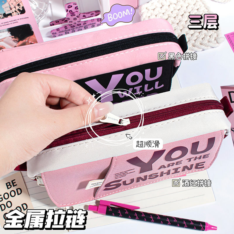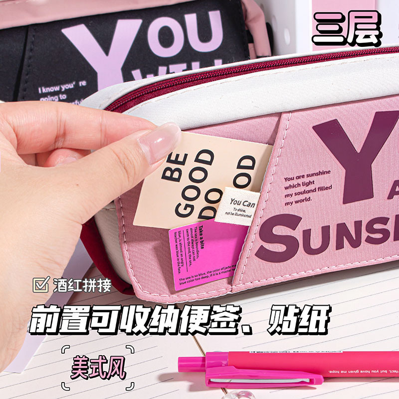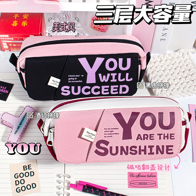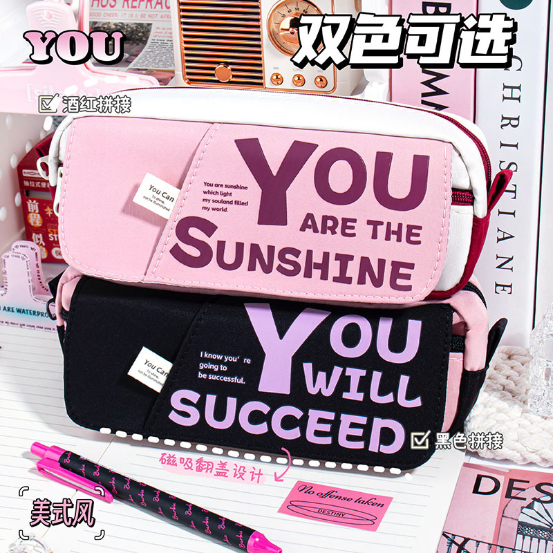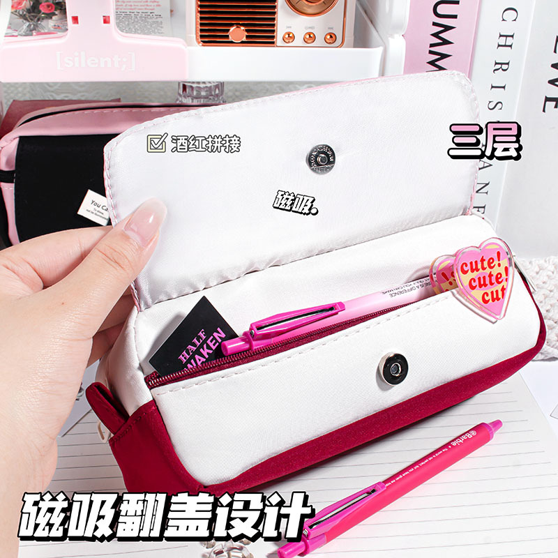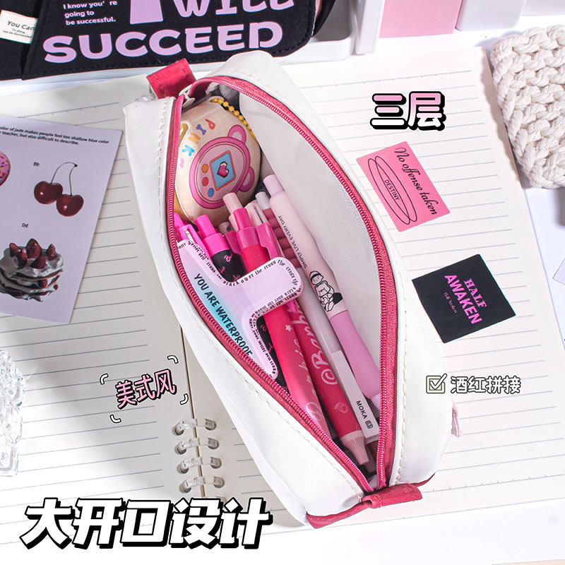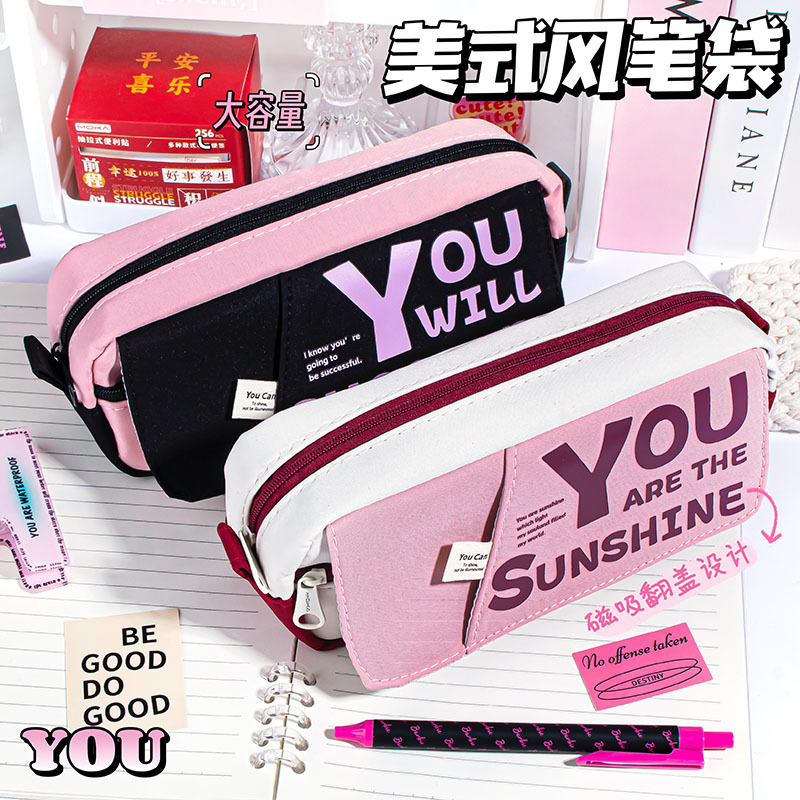 레트로 아메리칸 스타일 연필 케이스 플립 커버 대용량 문구 가방 Ins 높은 컬러 값 연필 케이스 학생 더러운 저항하는 문구 케이스