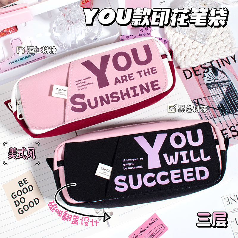 레트로 아메리칸 스타일 연필 케이스 플립 커버 대용량 문구 가방 Ins 높은 컬러 값 연필 케이스 학생 더러운 저항하는 문구 케이스스토어 가기