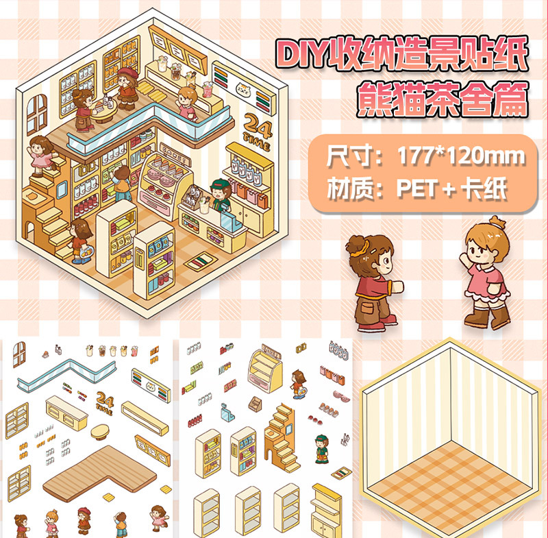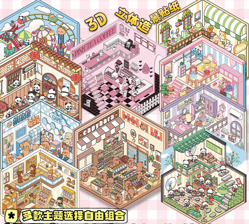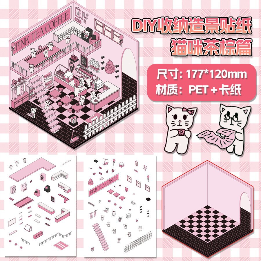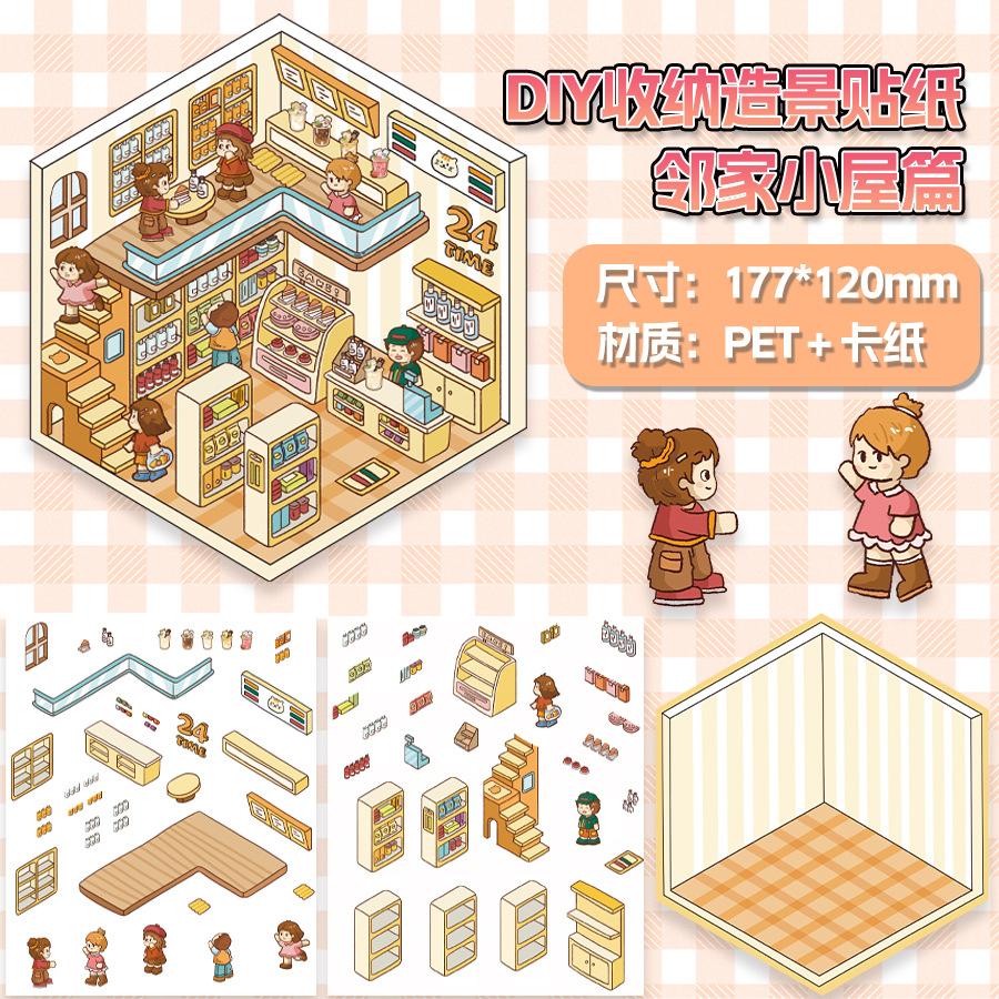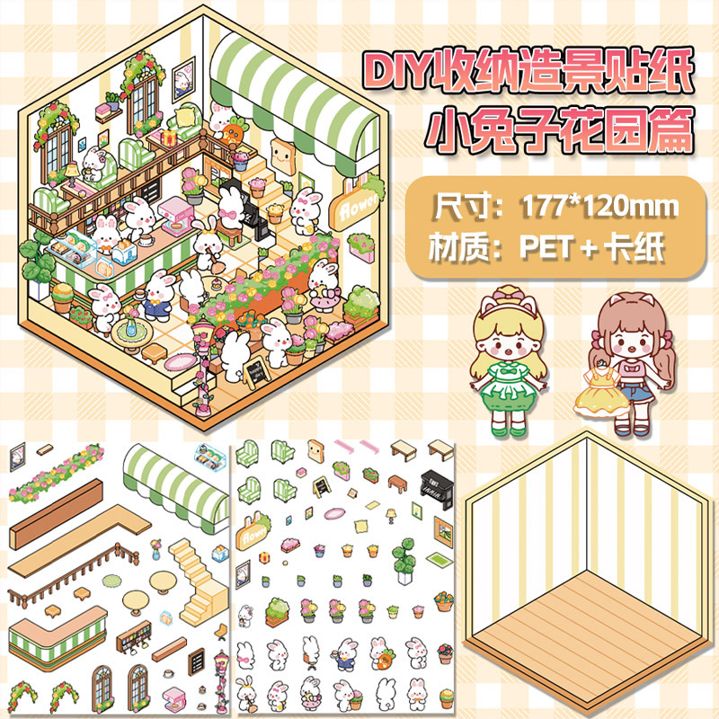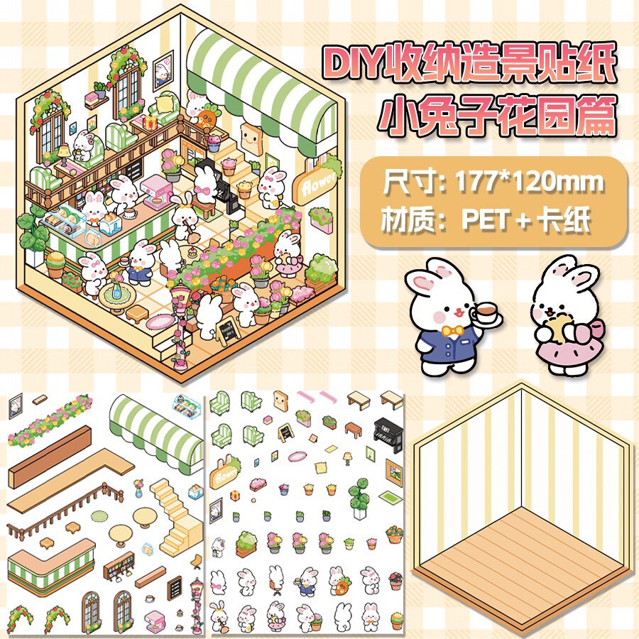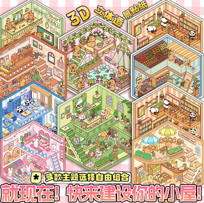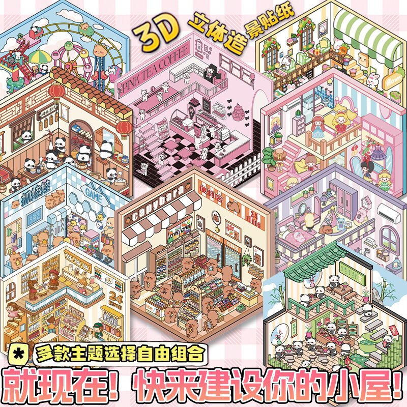 미니어처 월드 시리즈, 무컷 조경 스티커, 장면 스티커, 비주얼 스택 입체 오두막, 인터넷 연예인스토어 가기