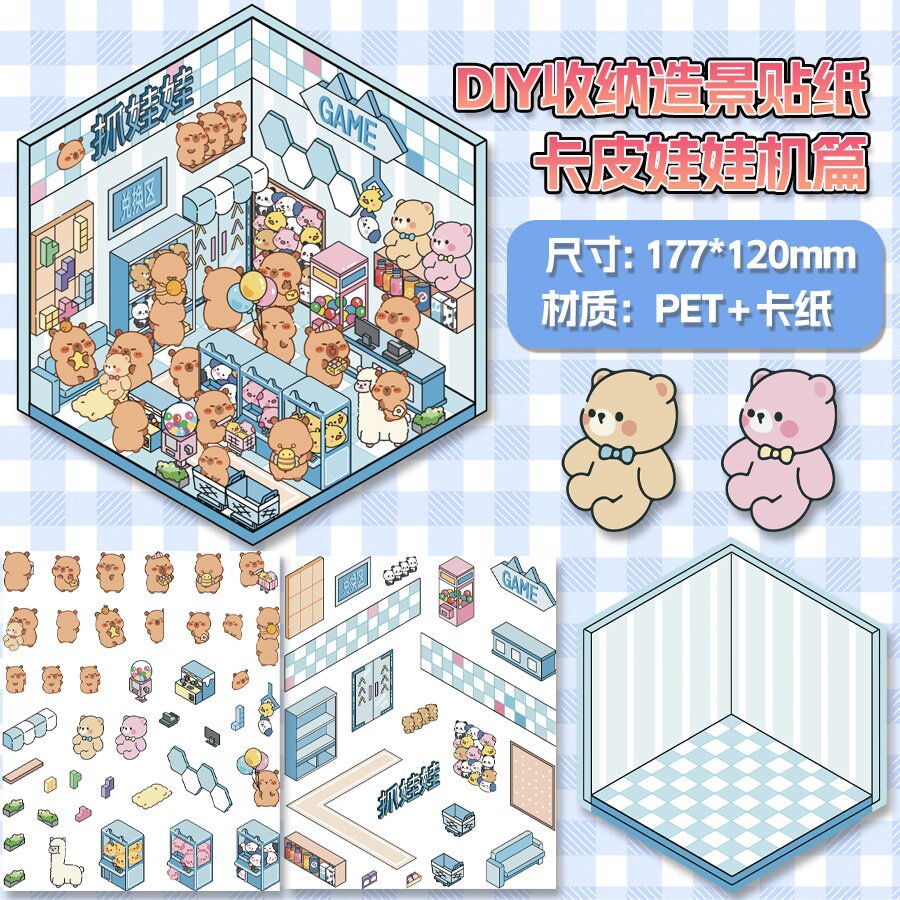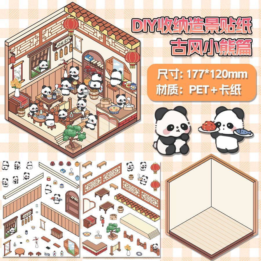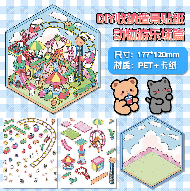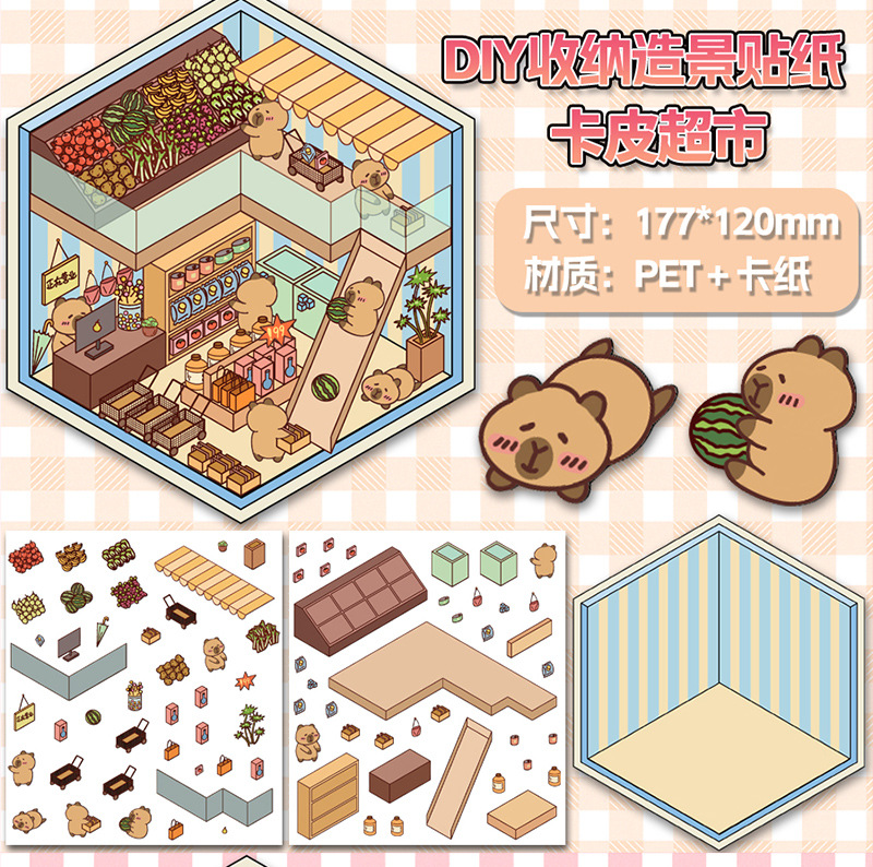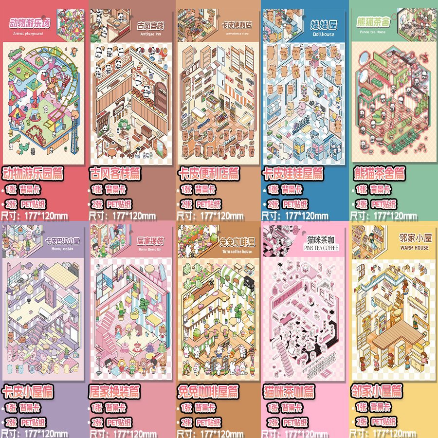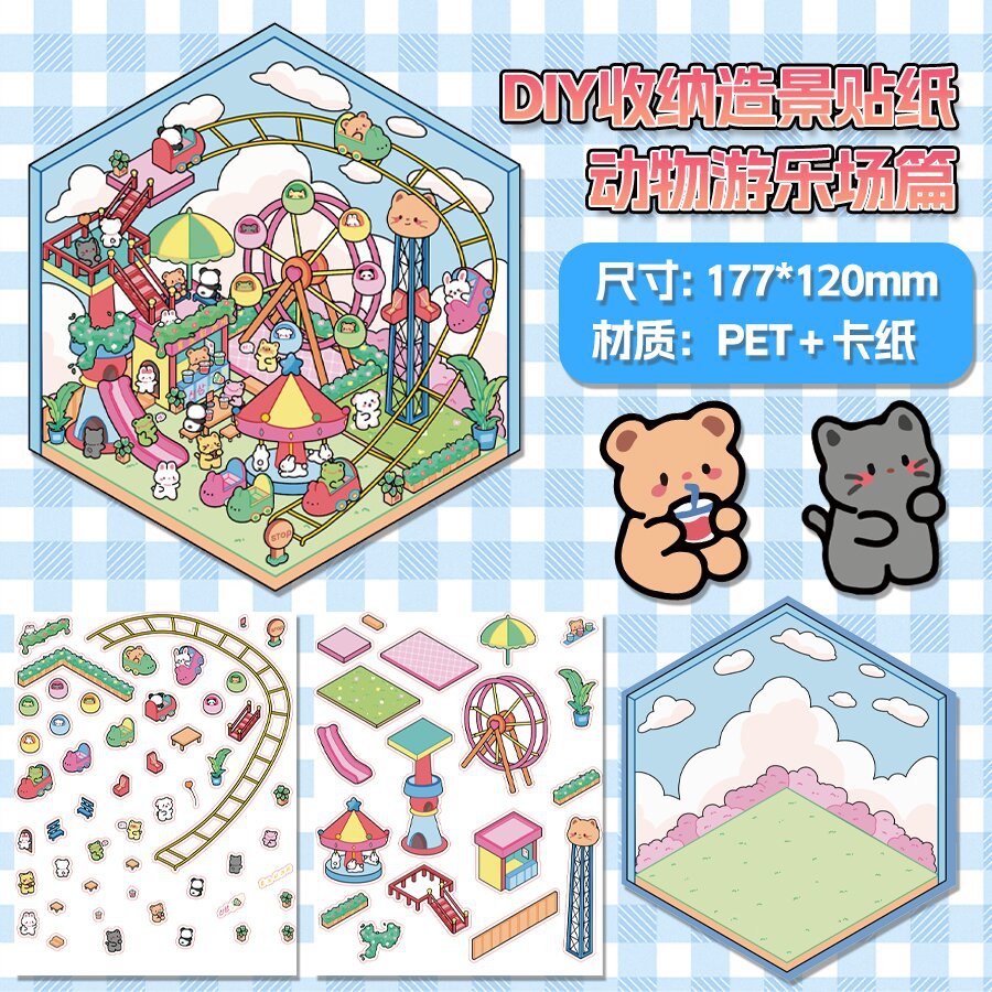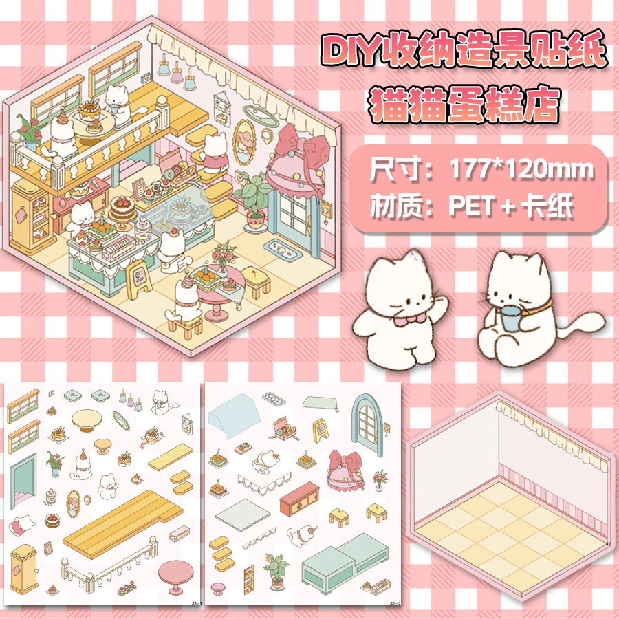 미니어처 월드 시리즈, 무컷 조경 스티커, 장면 스티커, 비주얼 스택 입체 오두막, 인터넷 연예인스토어 가기