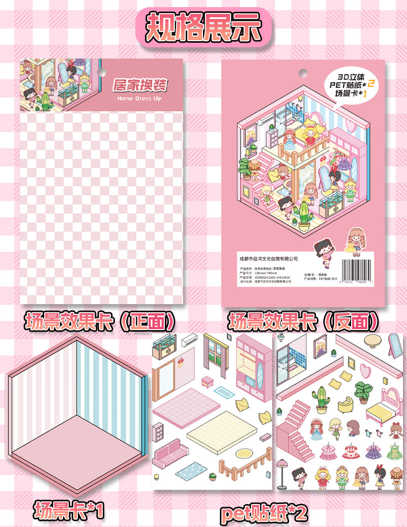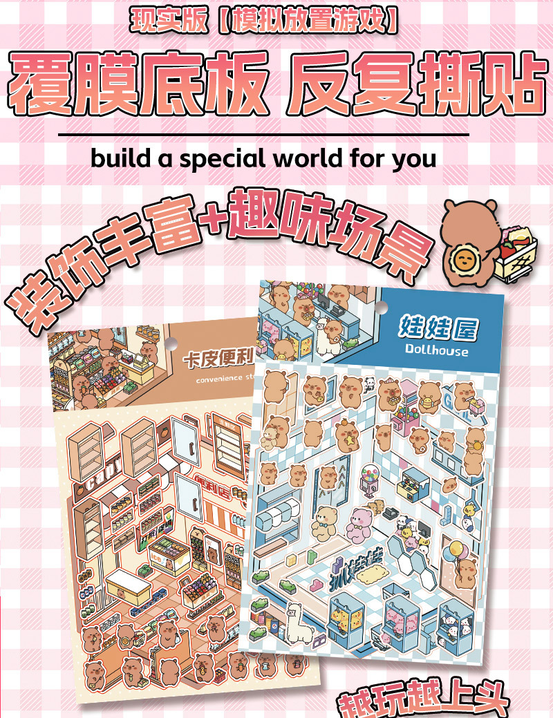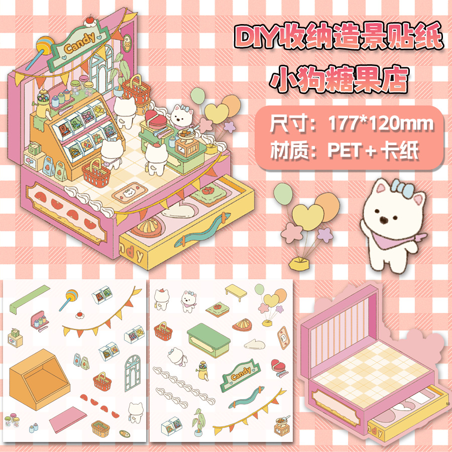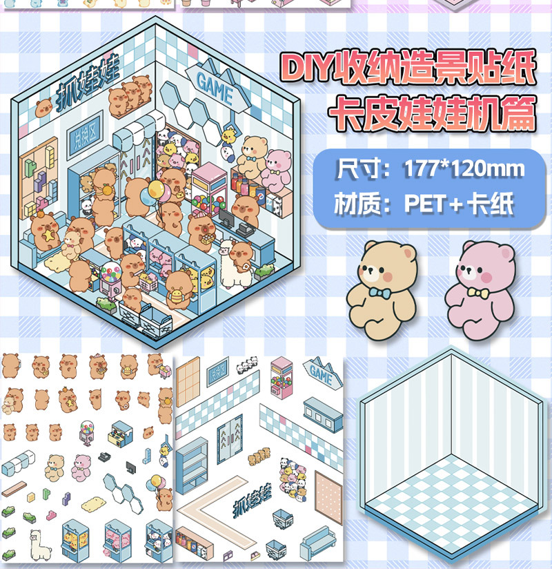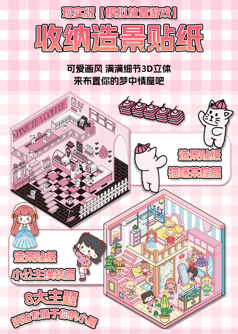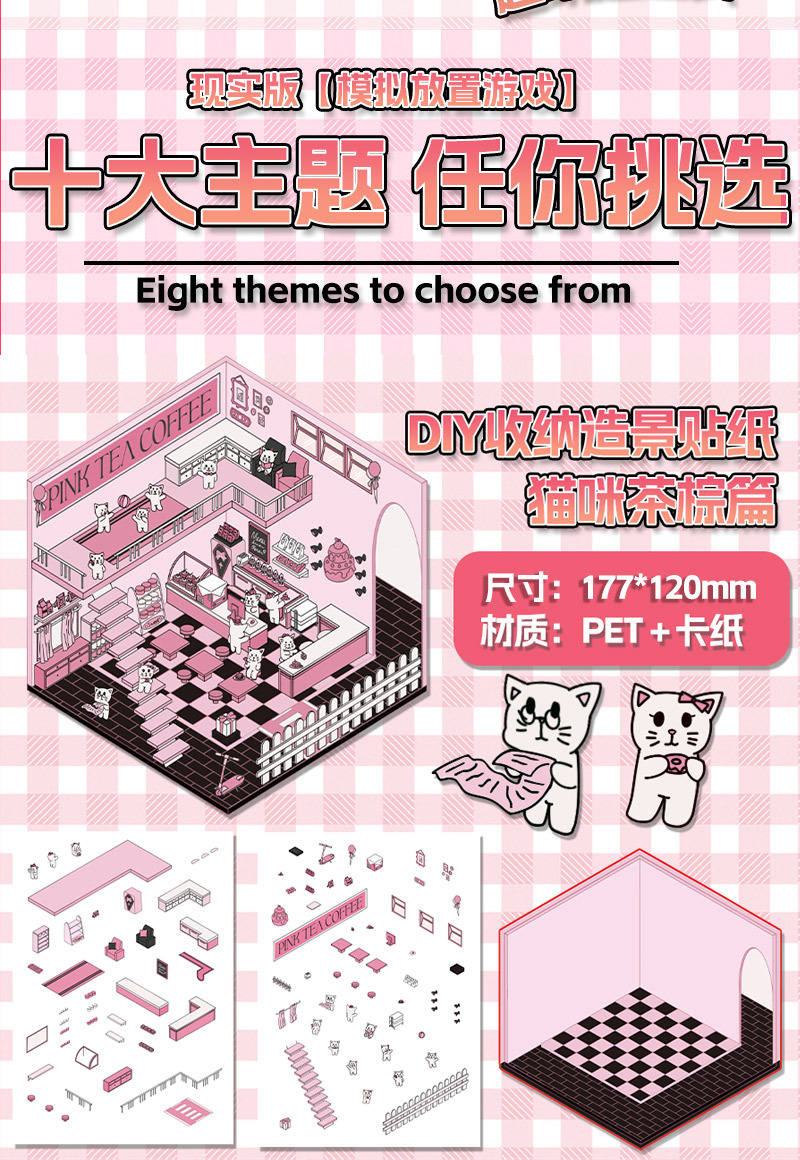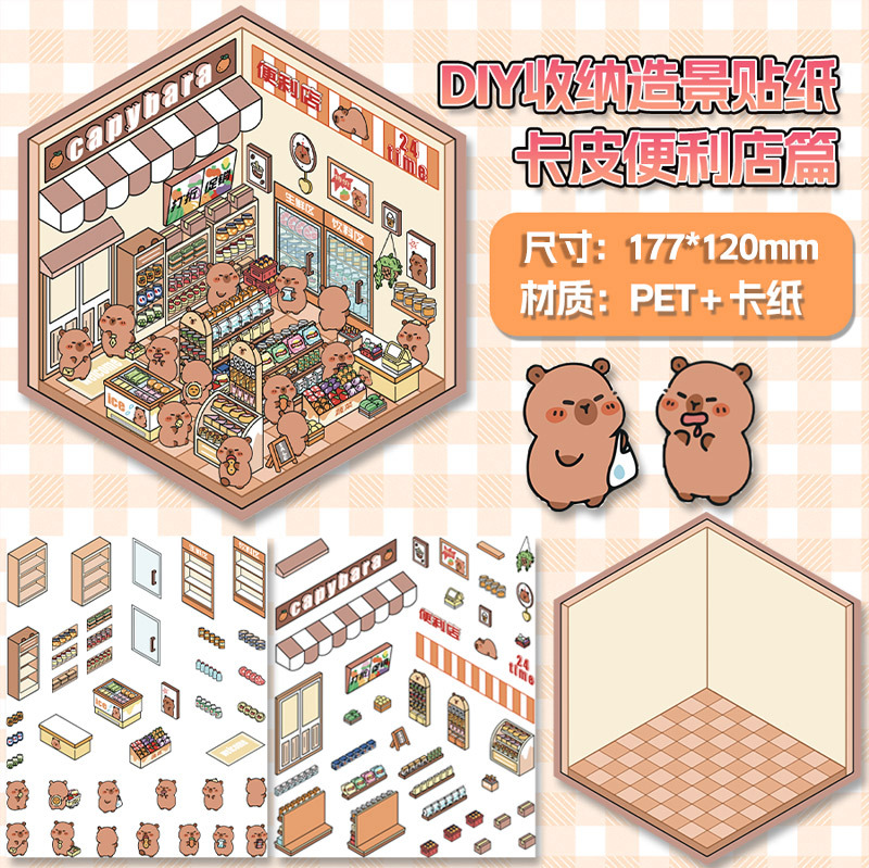 미니어처 월드 시리즈, 무컷 조경 스티커, 장면 스티커, 비주얼 스택 입체 오두막, 인터넷 연예인스토어 가기