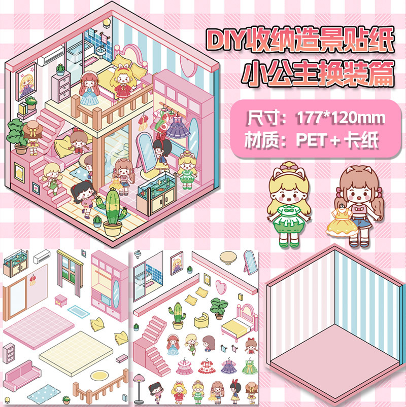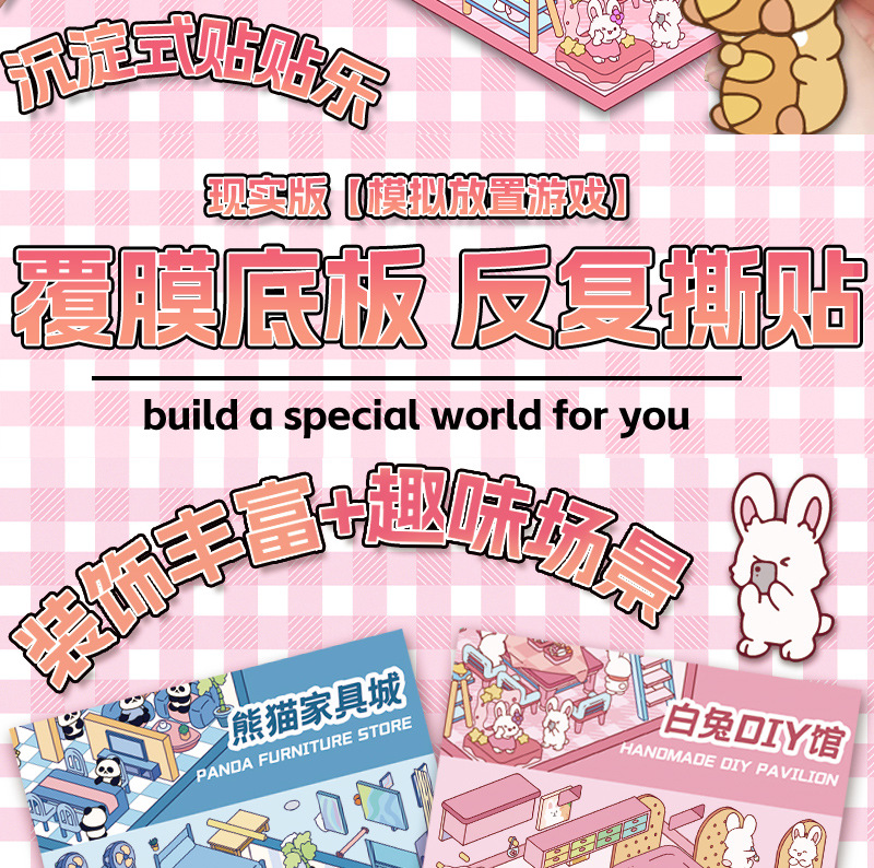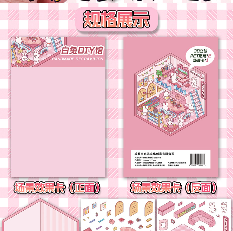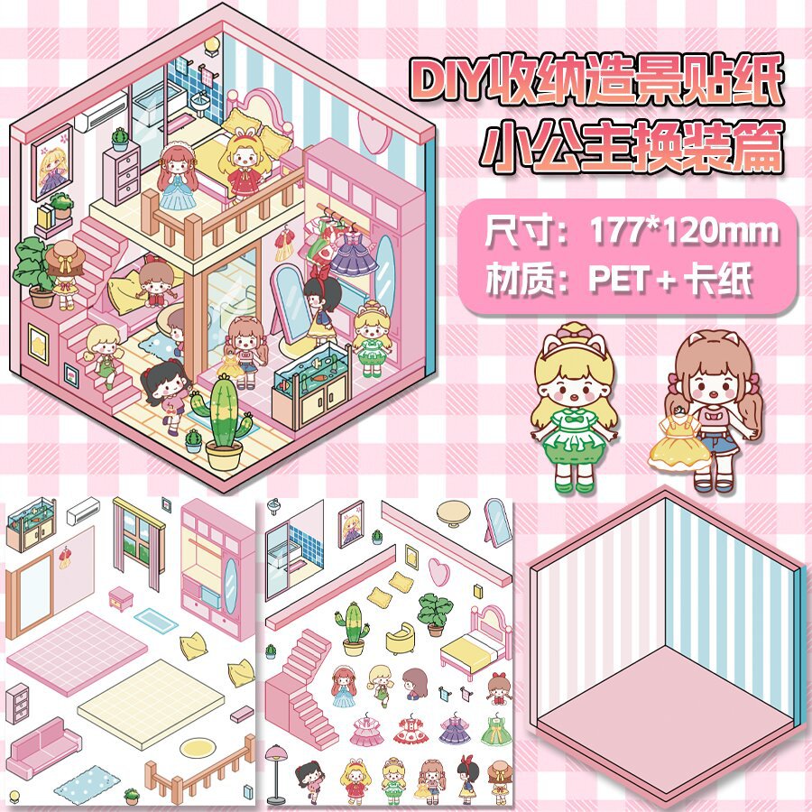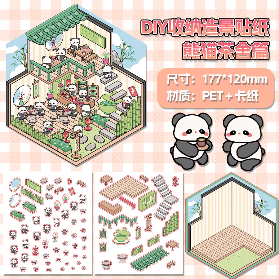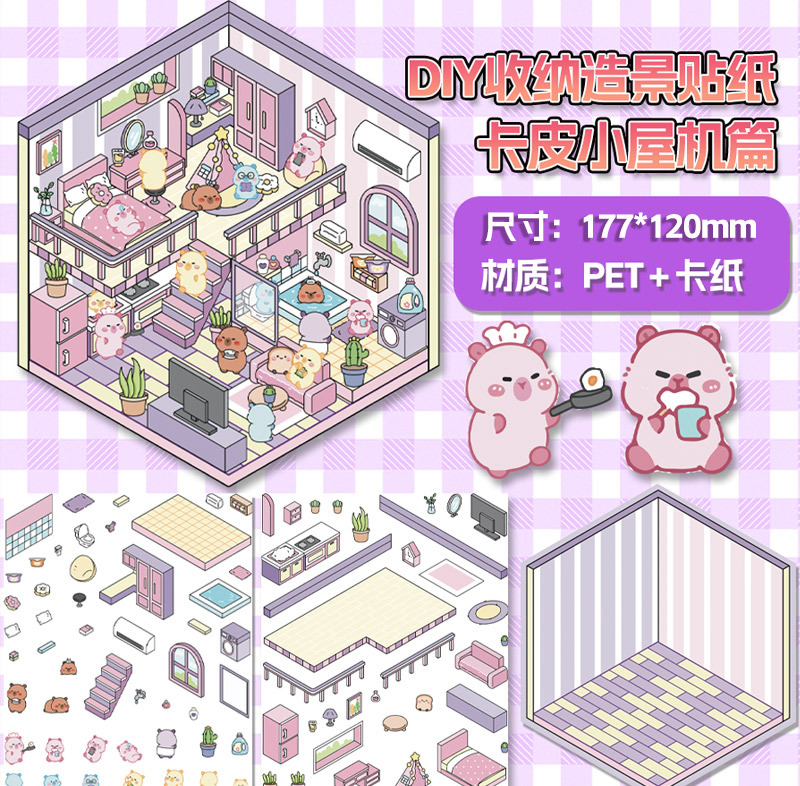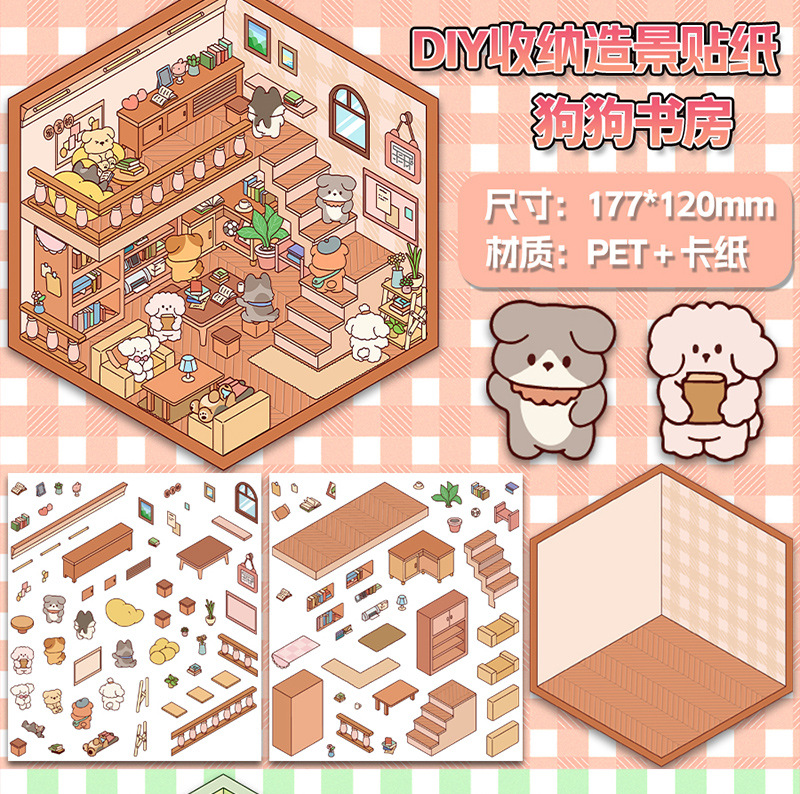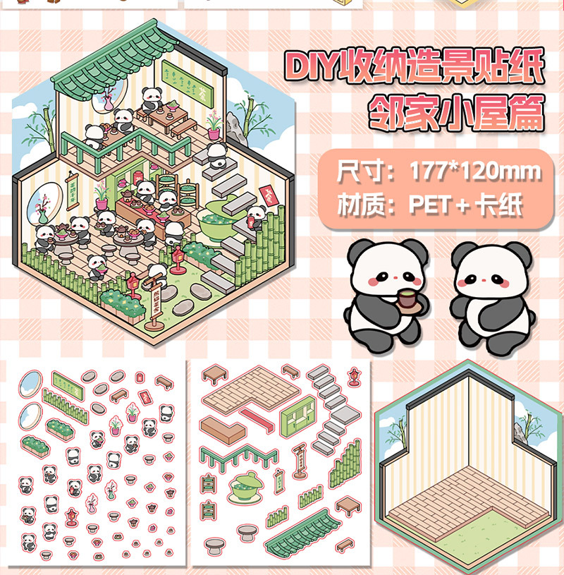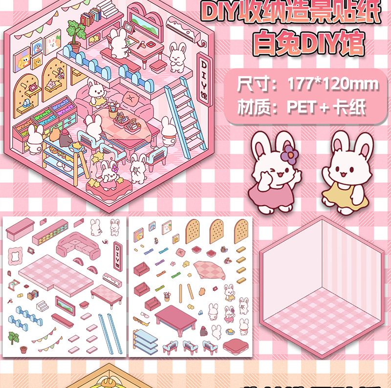 미니어처 월드 시리즈, 무컷 조경 스티커, 장면 스티커, 비주얼 스택 입체 오두막, 인터넷 연예인
