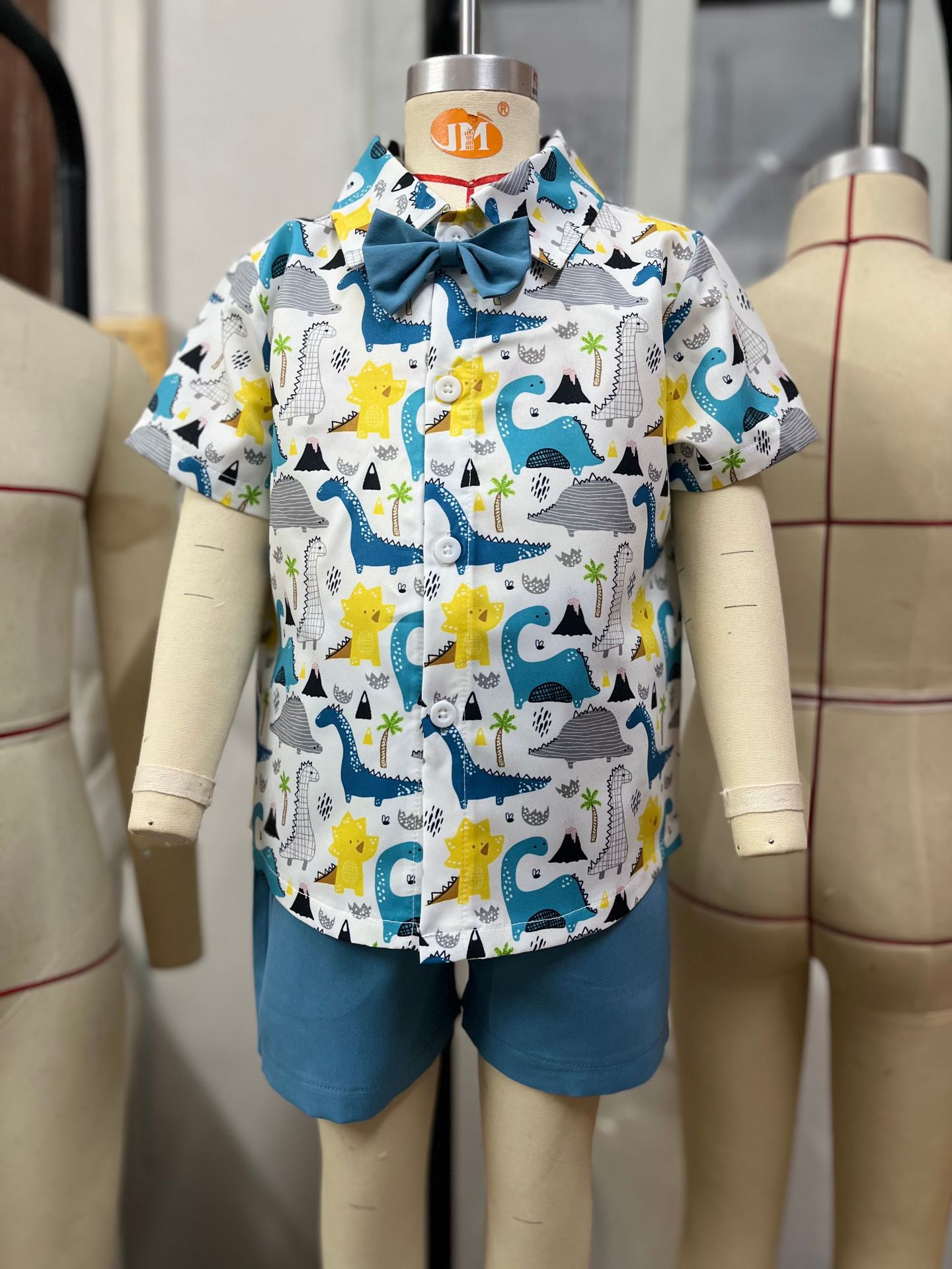 남자 어린이 셔츠 세트 반팔 반바지 오픈 치킨 공룡 귀여운 무 오픈 백 신사 캐주얼 세트