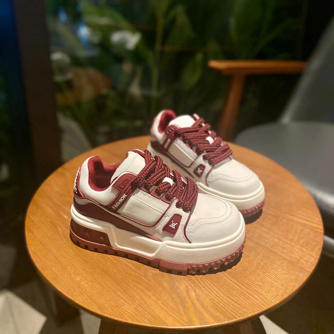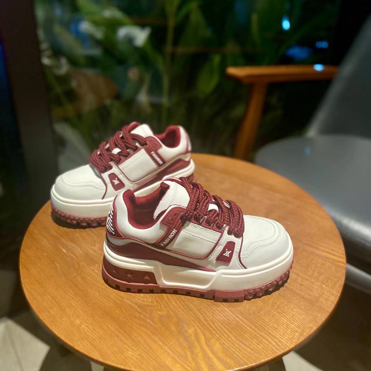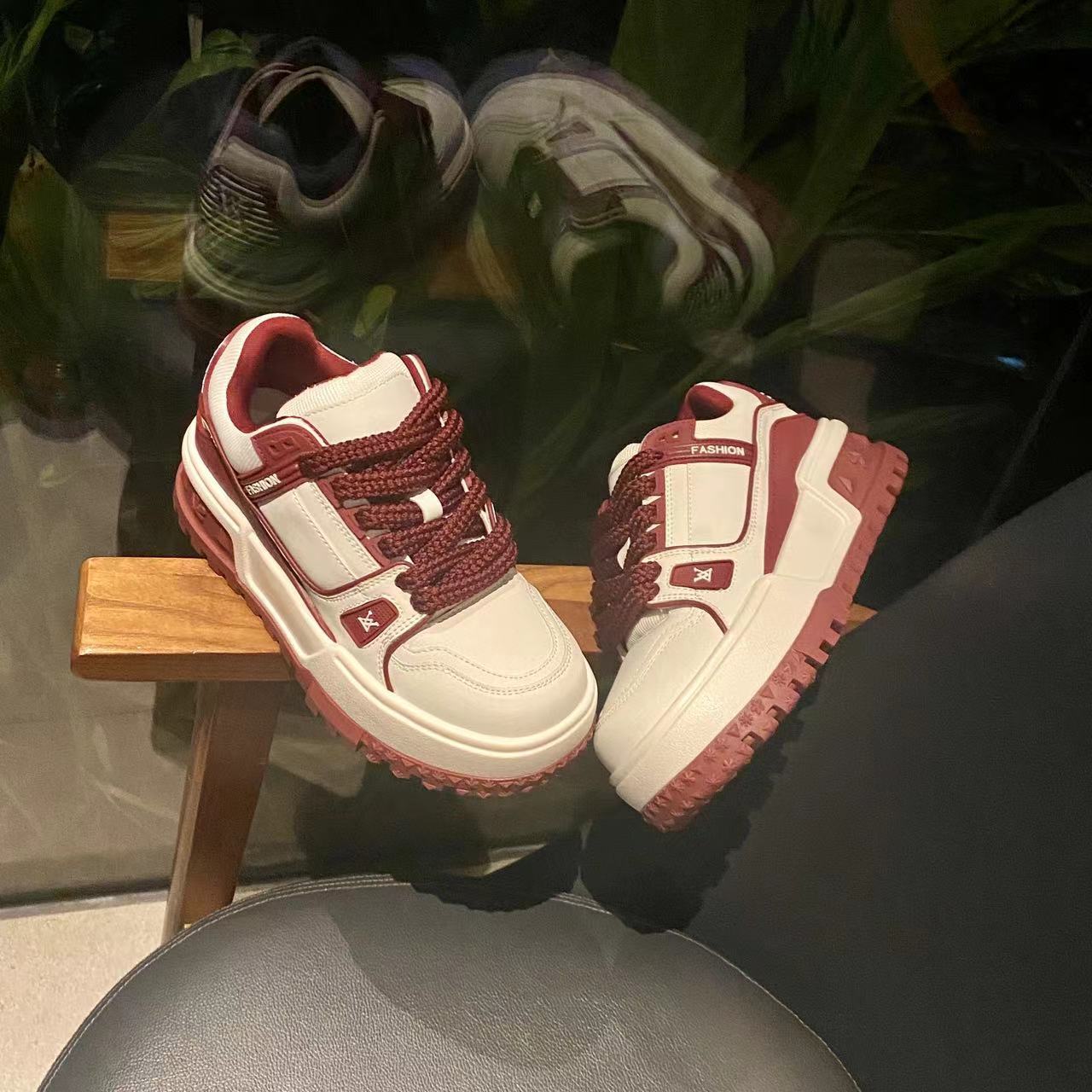가죽 보드 신발 두꺼운 밑창 강화 플랫폼 신발 레이스 업 컬러 매칭 조커 넷 레드 캐주얼 스포츠 팬더 여성 신발 도매