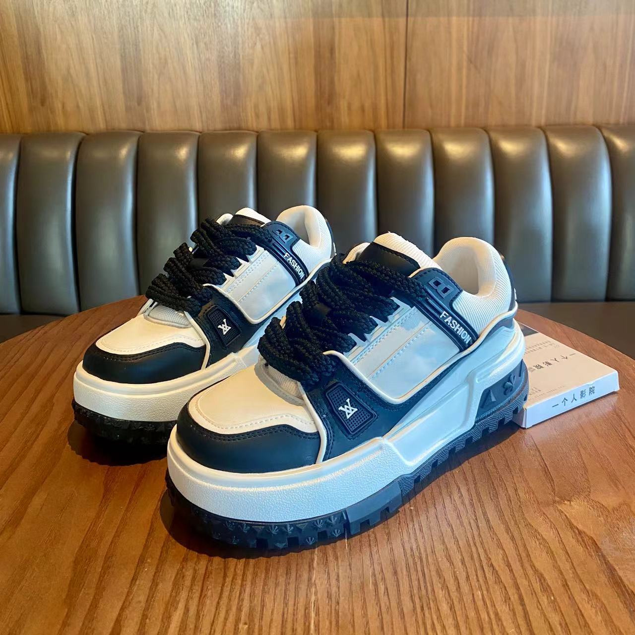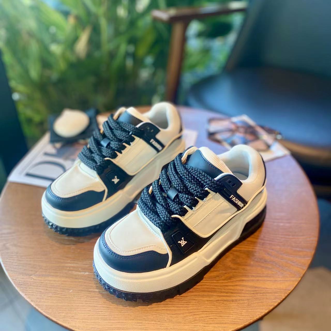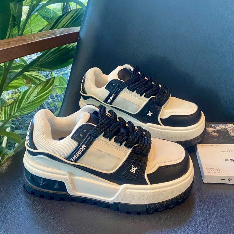 가죽 보드 신발 두꺼운 밑창 강화 플랫폼 신발 레이스 업 컬러 매칭 조커 넷 레드 캐주얼 스포츠 팬더 여성 신발 도매스토어 가기