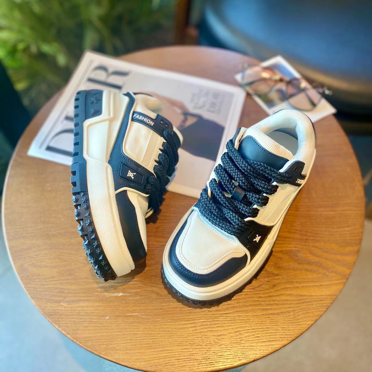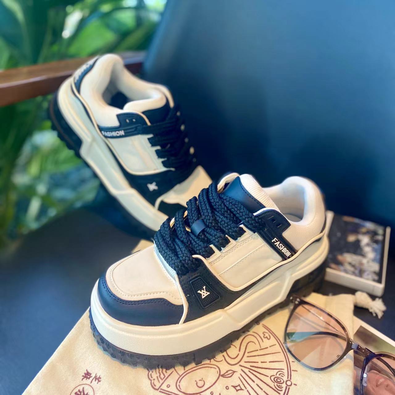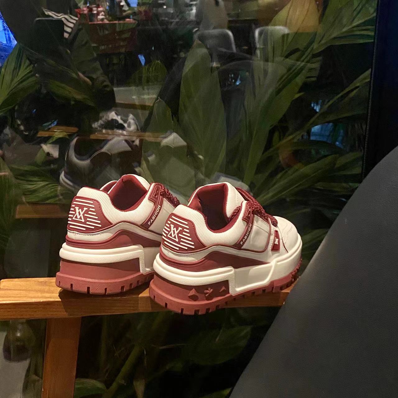 가죽 보드 신발 두꺼운 밑창 강화 플랫폼 신발 레이스 업 컬러 매칭 조커 넷 레드 캐주얼 스포츠 팬더 여성 신발 도매스토어 가기