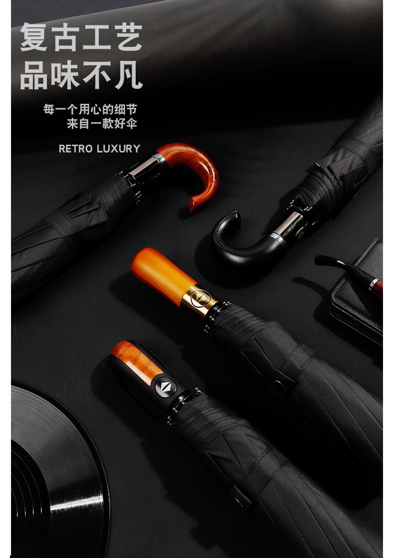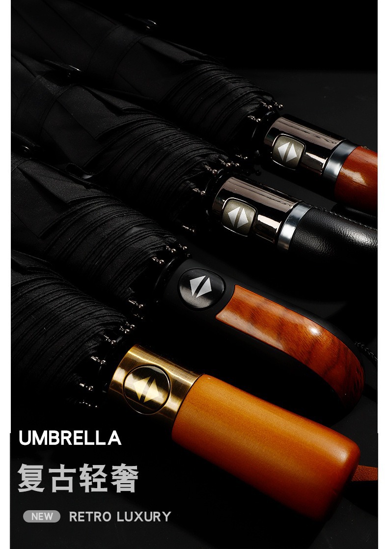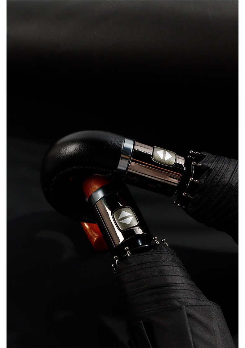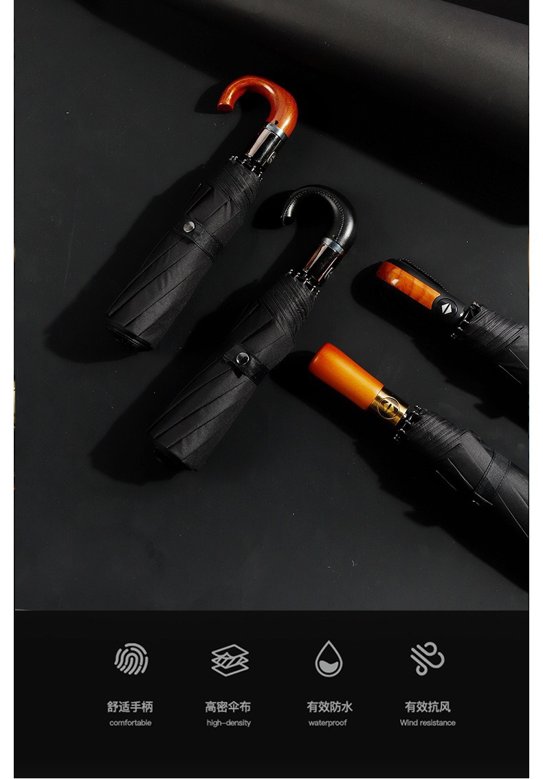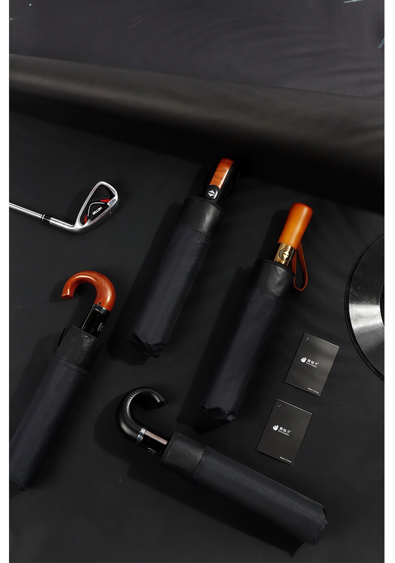 23 인치 10 뼈 완전 자동 차양 선 스크린 우산 가죽 곡선 손잡이 단단한 나무 곡선 손잡이 고무 곡선 손잡이 3 배 우산스토어 가기
