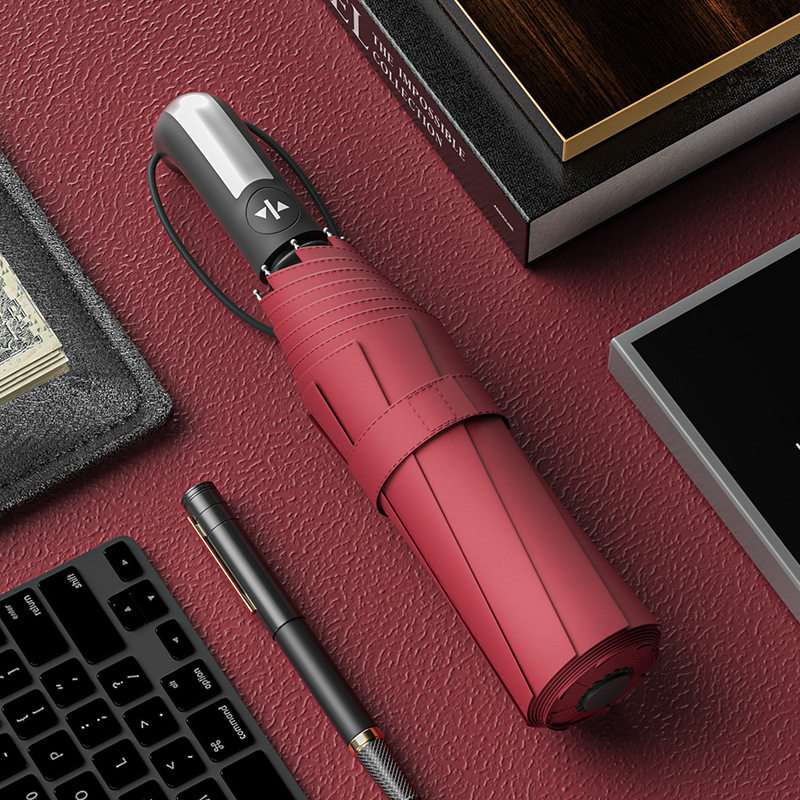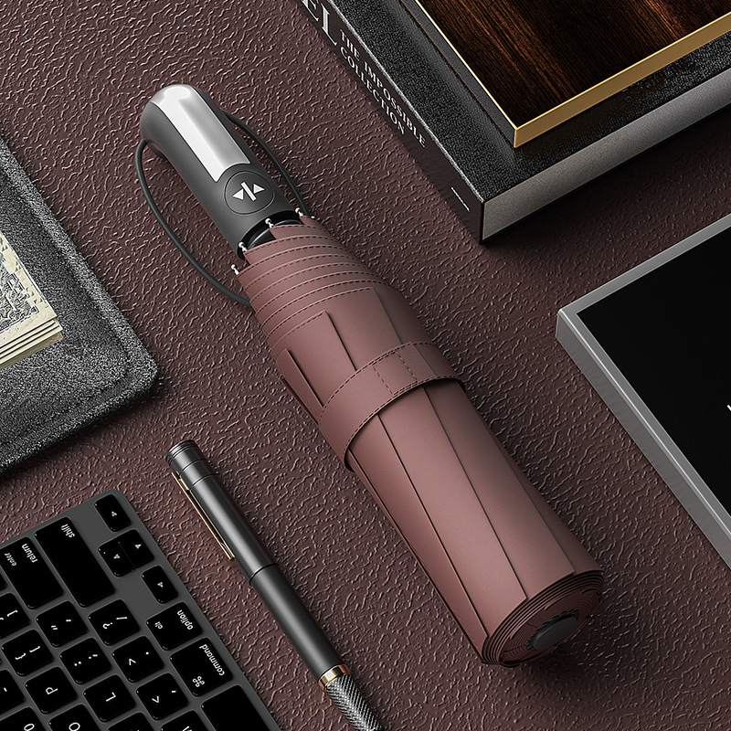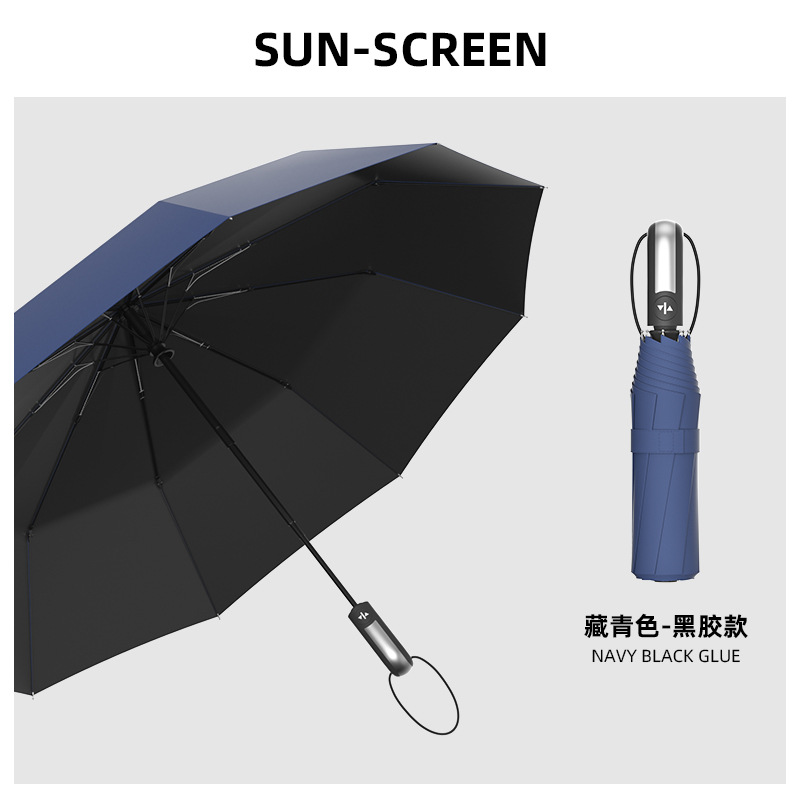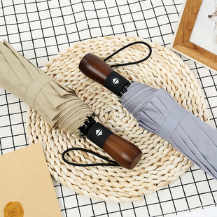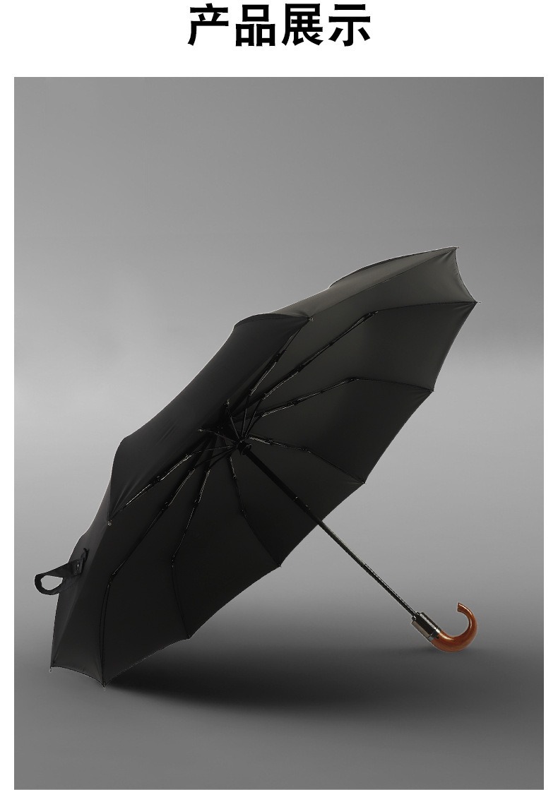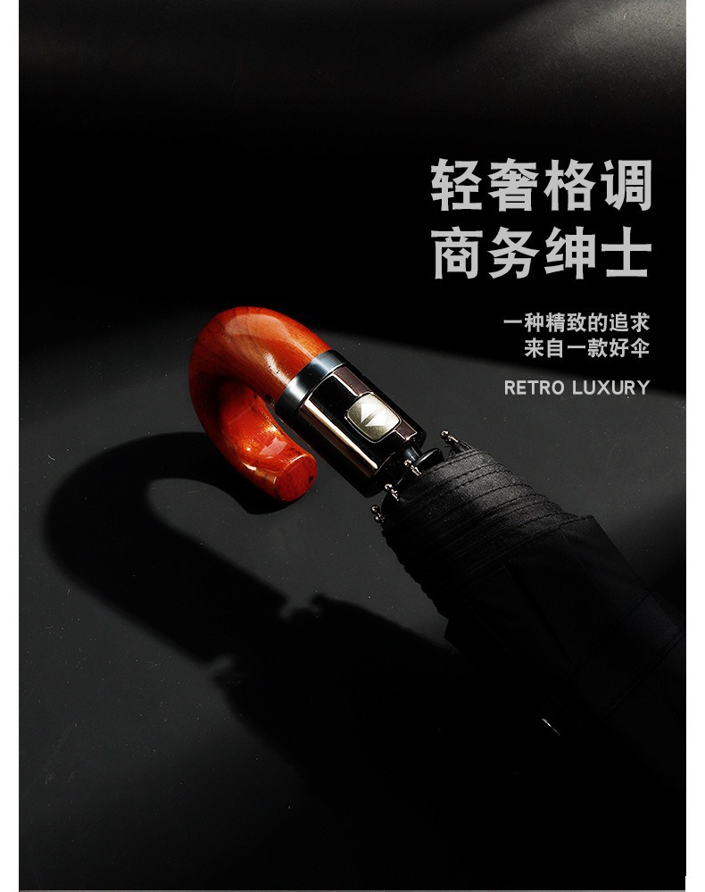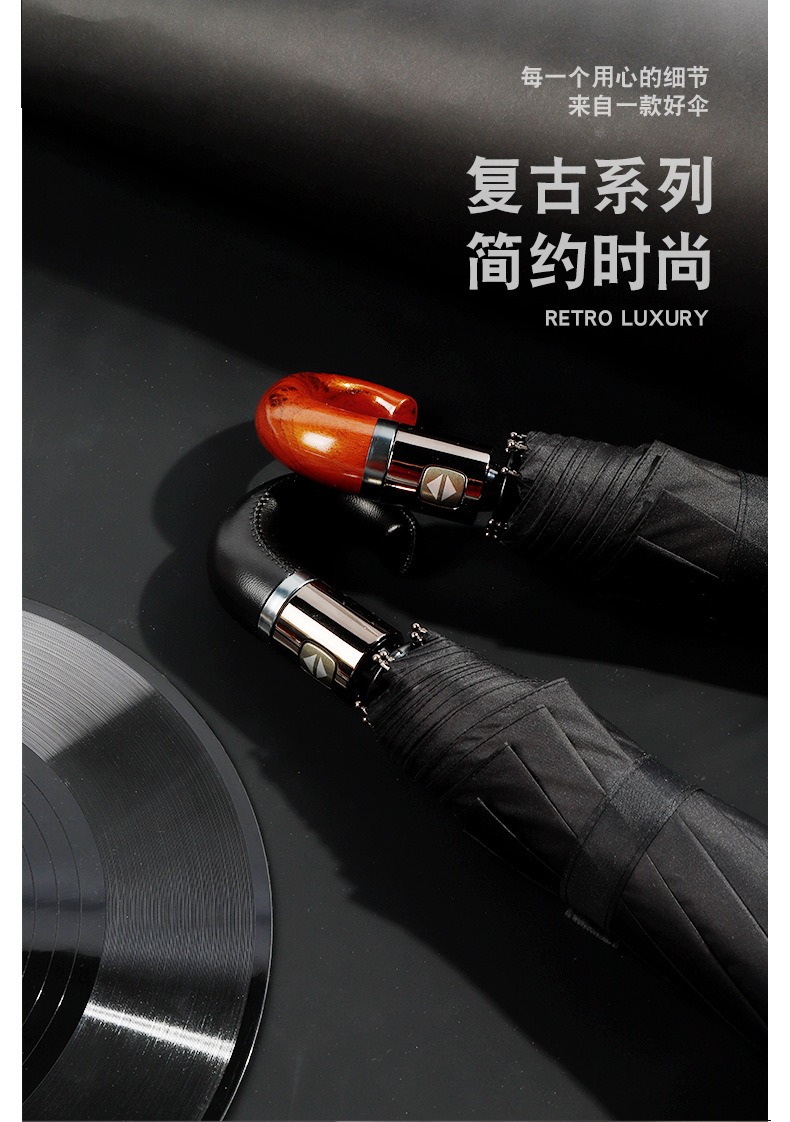 23 인치 10 뼈 완전 자동 차양 선 스크린 우산 가죽 곡선 손잡이 단단한 나무 곡선 손잡이 고무 곡선 손잡이 3 배 우산스토어 가기