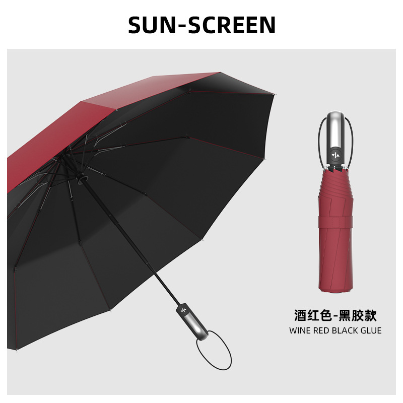 23 인치 10 뼈 완전 자동 차양 선 스크린 우산 가죽 곡선 손잡이 단단한 나무 곡선 손잡이 고무 곡선 손잡이 3 배 우산